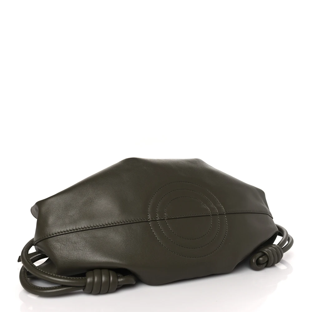 This Loewe Paseo Bag Small in Dark Khaki Green showcases shiny nappa calfskin leather with a luxurious finish. Compact yet spacious, it’s perfect for essentials. The dark khaki green tone adds subtle elegance. Adjustable strap ensures versatile styling. A chic and functional accessory. Perfect for any occasion.