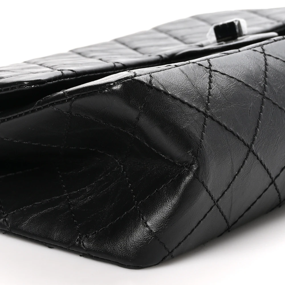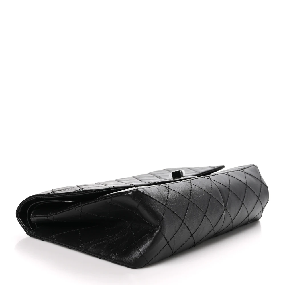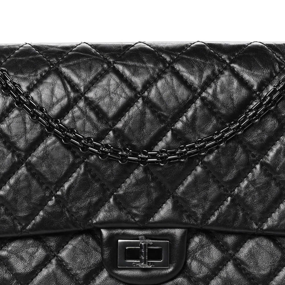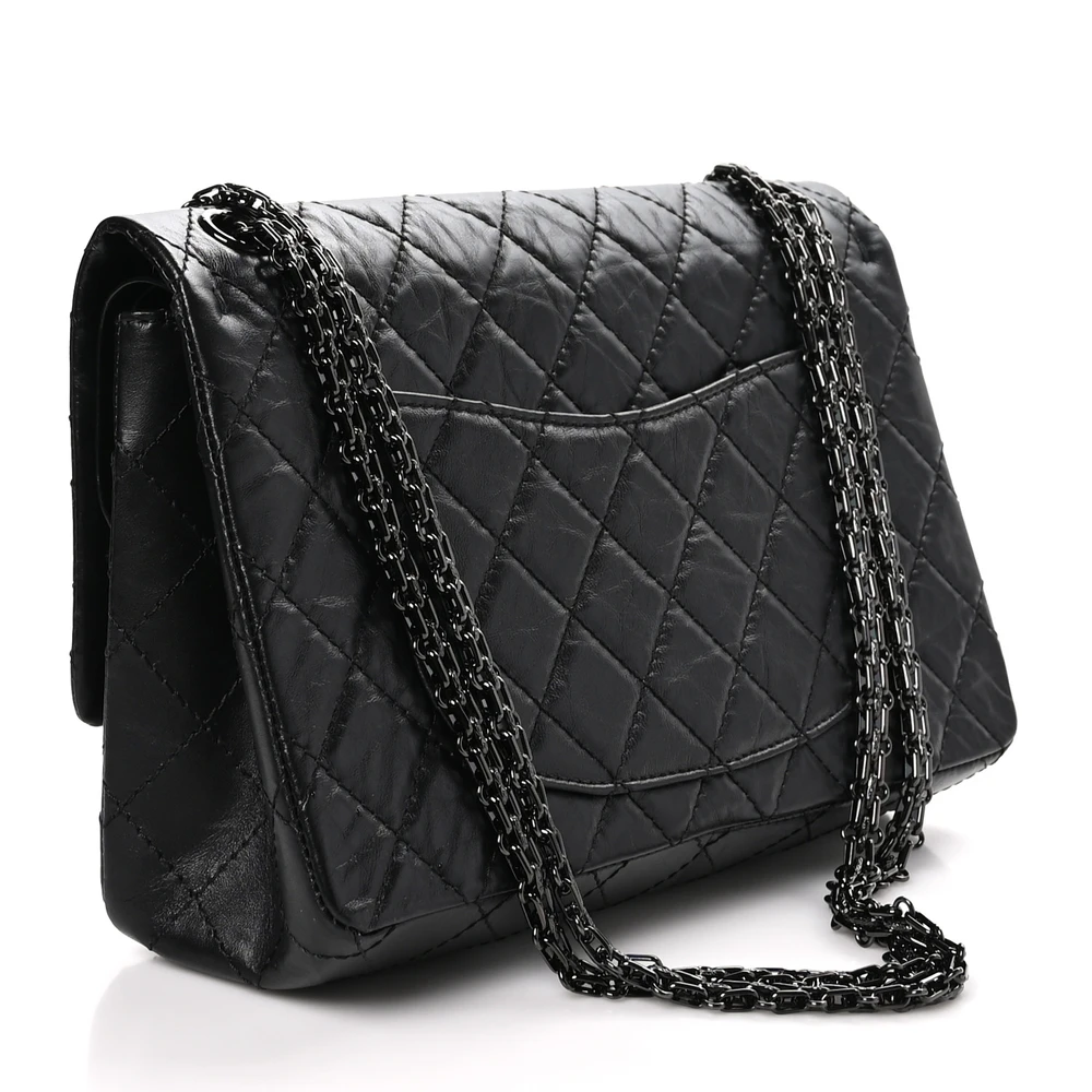 This Chanel 2.55 Reissue 226 Flap Large in Quilted Aged Calfskin Leather So Black is a modern twist on an iconic design. The aged calfskin leather adds a touch of vintage charm, while the all-black hardware creates a sleek, monochromatic look. Its spacious interior and multiple compartments make it practical yet stylish. The signature Mademoiselle turn-lock closure adds a timeless Chanel detail. Perfect for both day and evening wear, this bag exudes understated luxury. A must-have for Chanel collectors.