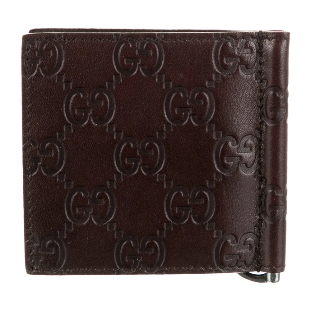 This Gucci Small Money Clip Bifold Wallet is a sleek and functional piece. Crafted from brown GG signature canvas, it features the brand’s classic monogram pattern. The silver hardware adds a modern touch to its timeless design. Compact yet versatile, it’s ideal for organizing essentials. This wallet conveys heritage style with modern utility.