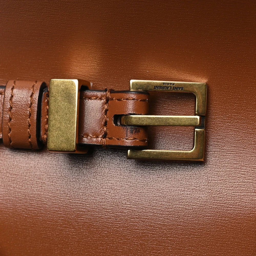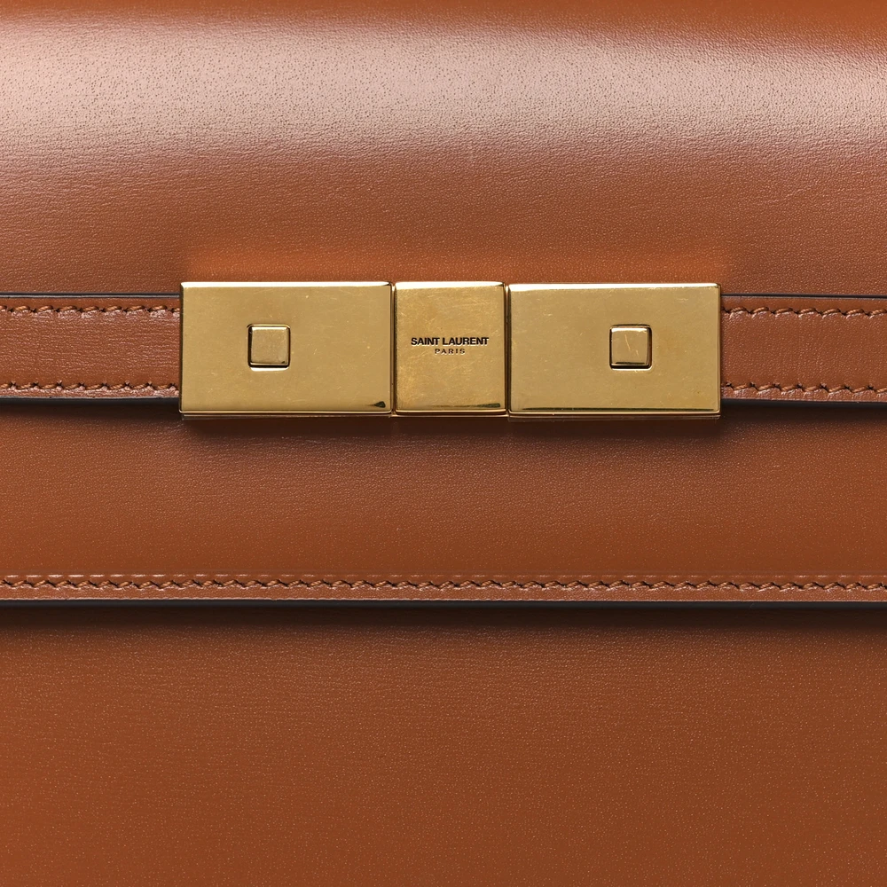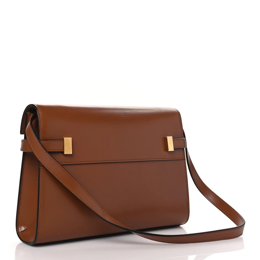 This Small Manhattan Shoulder Bag in Cognac is crafted from Smooth Calfskin Leather with brass hardware for a refined, minimalist look. Its structured design and compact size make it perfect for everyday essentials. The adjustable strap offers versatility, while the rich leather finish adds a touch of sophistication. A modern classic for effortless style.