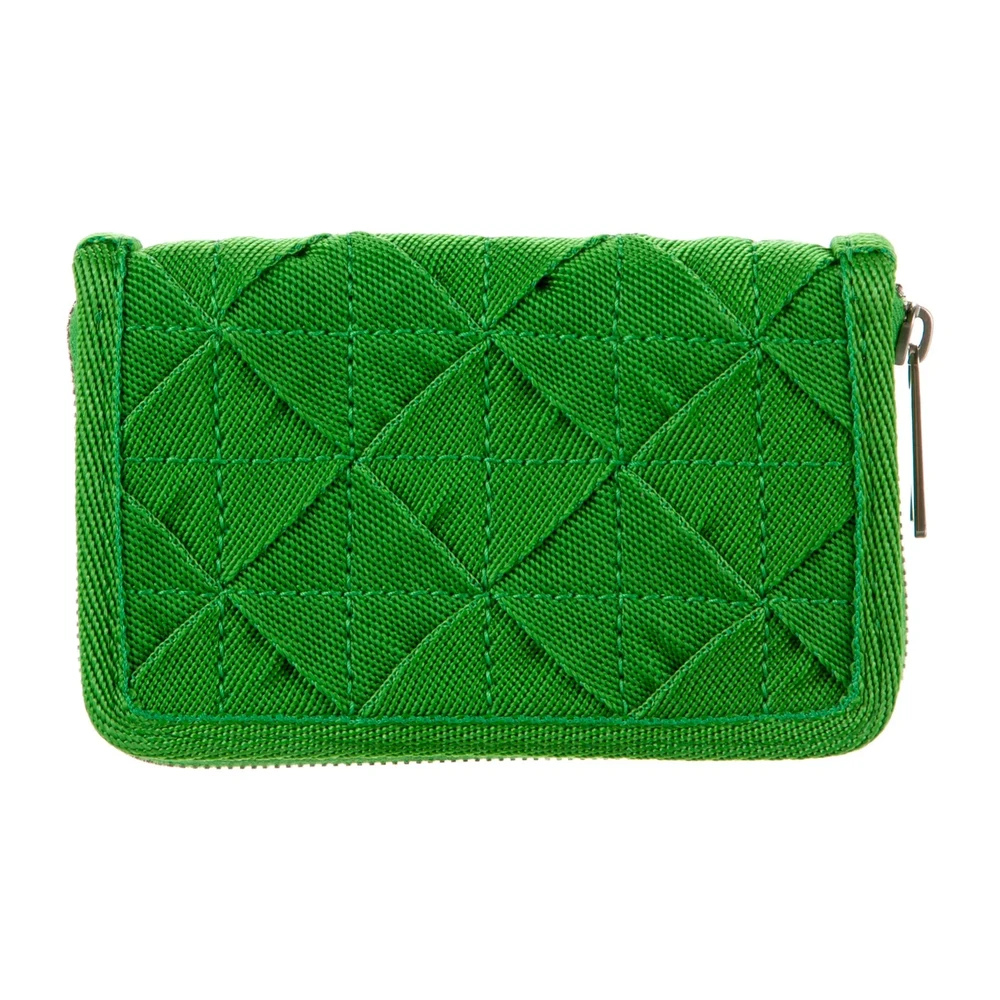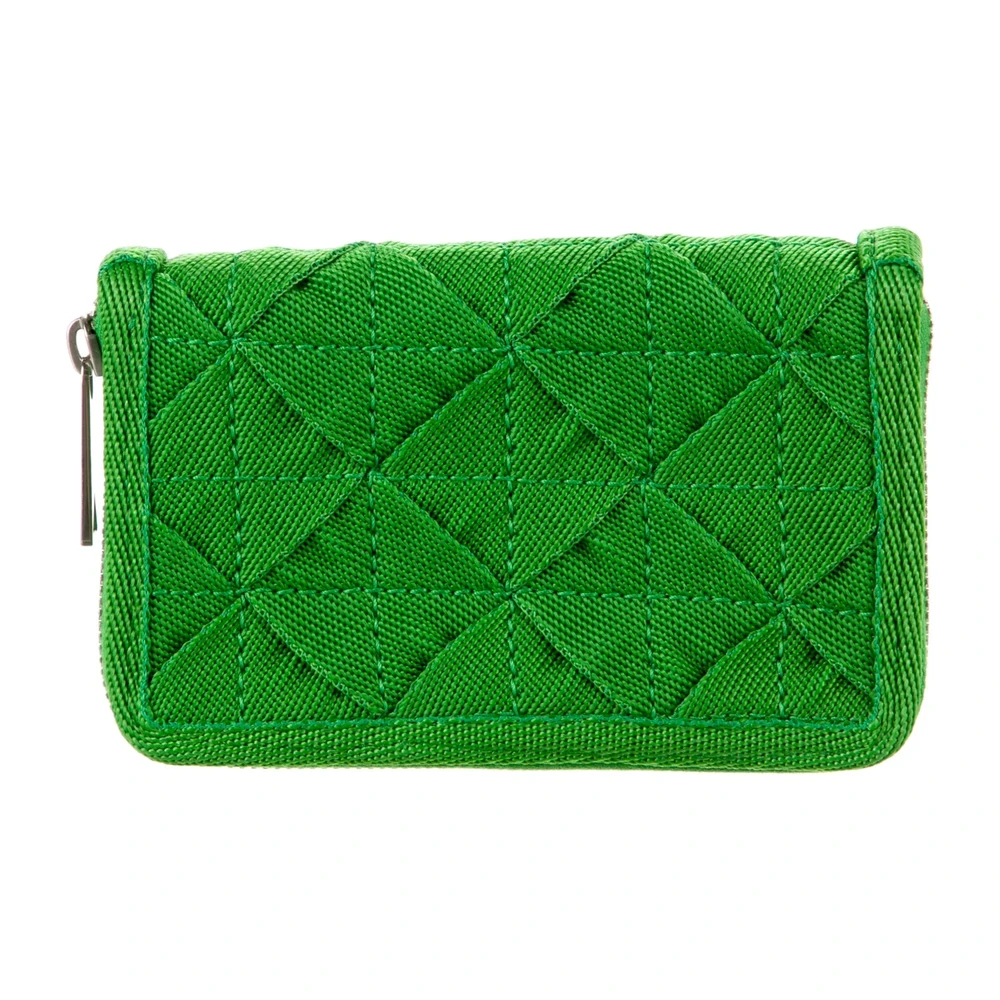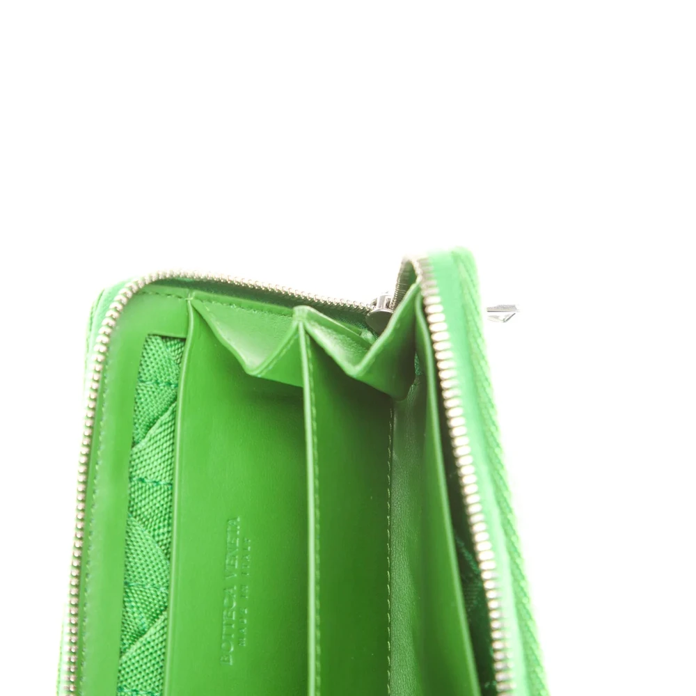 This Bottega Veneta Small Zip Wallet showcases artisanal craftsmanship and timeless design. Made from green Intrecciato weave lambskin leather, it features the brand’s iconic woven pattern. The silver hardware enhances its sophisticated aesthetic. Compact yet spacious, it’s perfect for organizing essentials. This wallet conveys refined luxury with practical elegance.