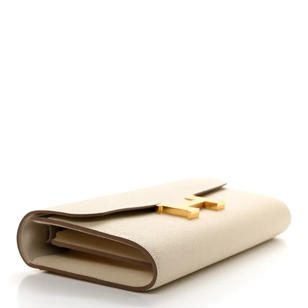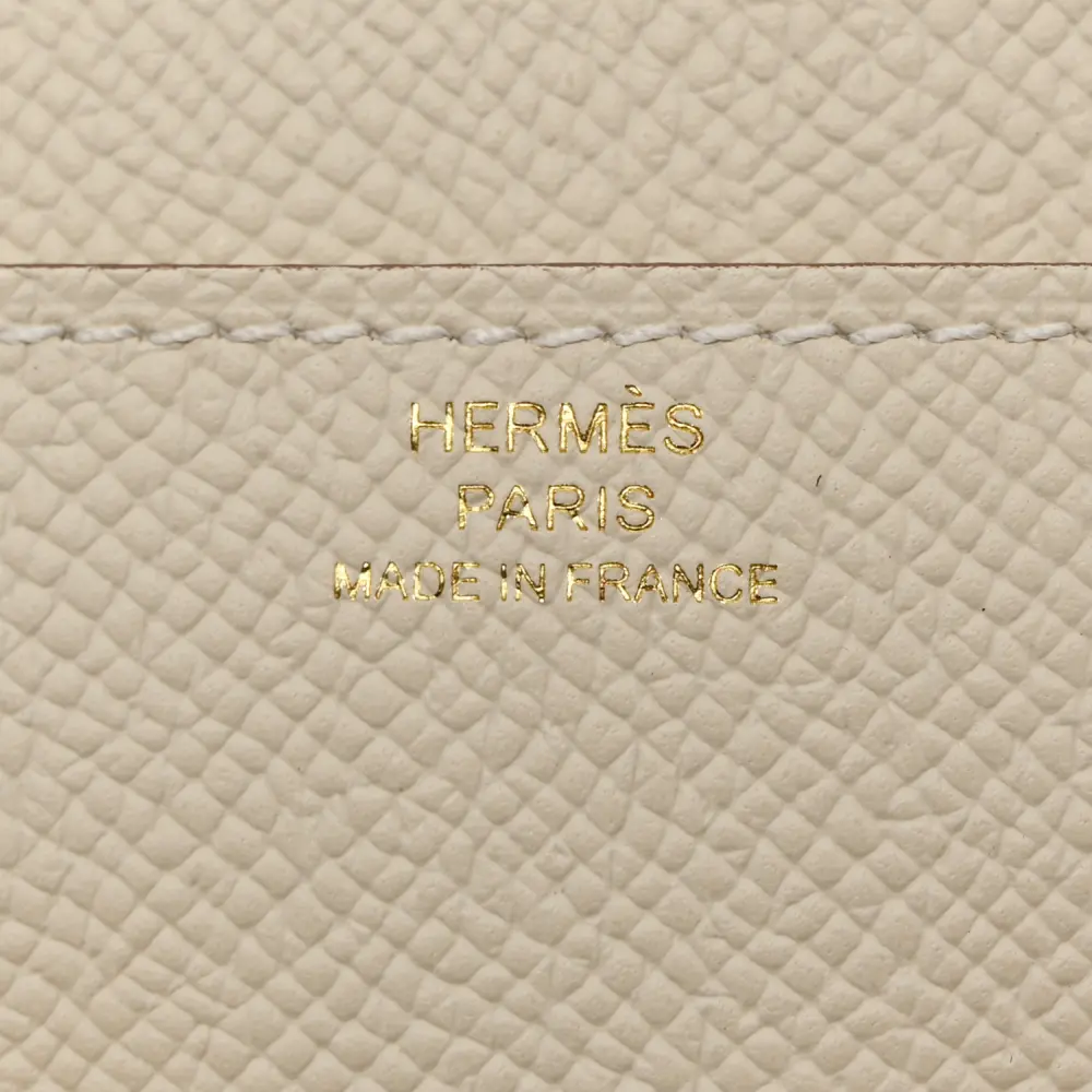 This Hermès Constance Long To Go Wallet in Craie Epsom Leather is a practical luxury. The neutral tone is paired with rose gold hardware for a sophisticated touch. Its versatile design transitions seamlessly from wallet to crossbody. Durable Epsom leather ensures long-lasting elegance. A compact yet functional accessory for daily use. A refined piece for the discerning collector.