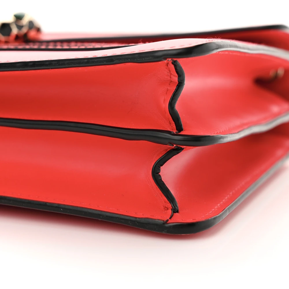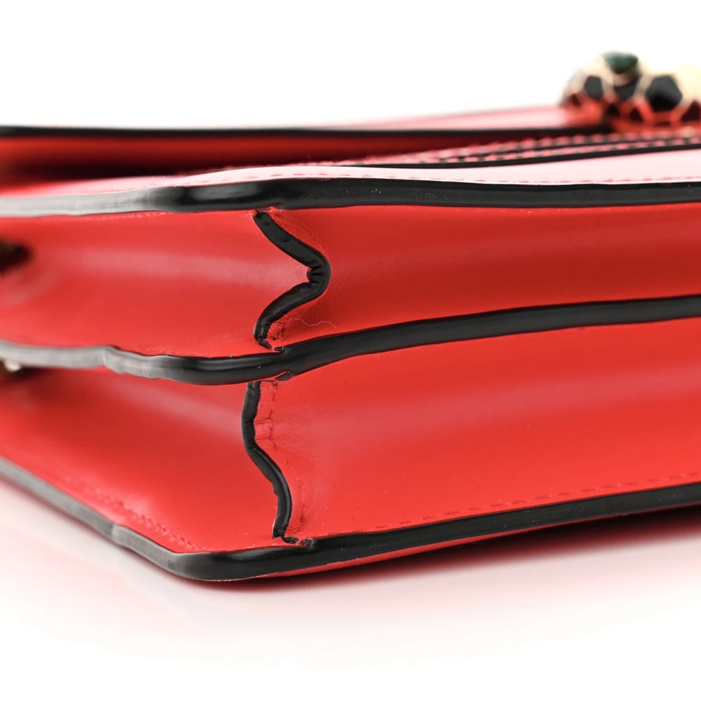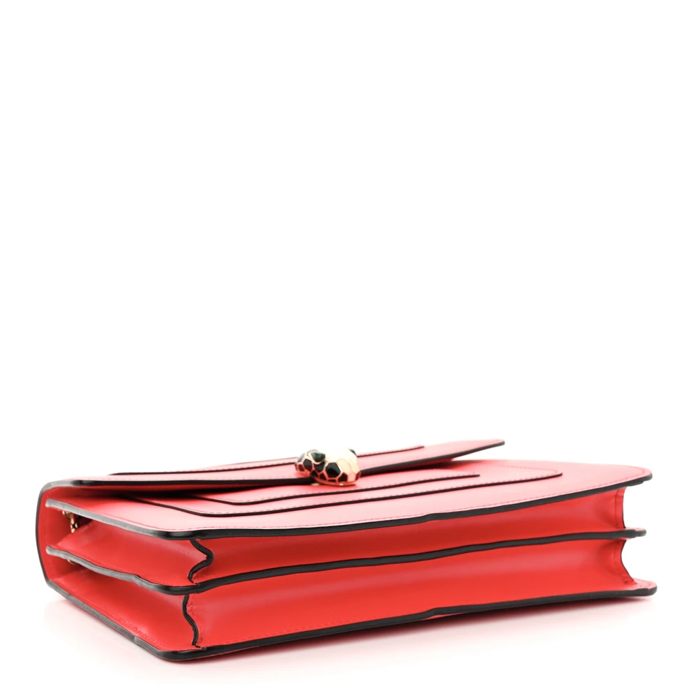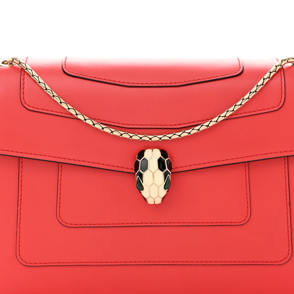 This Bvlgari Medium Serpenti Forever Shoulder Bag in Red is a bold and elegant statement piece. Made from premium calfskin leather, it features the iconic Serpenti clasp in luxurious gold hardware. The spacious interior and adjustable strap make it perfect for both daily wear and special occasions. Its striking red finish ensures you stand out wherever you go. A timeless design that exudes sophistication and class.