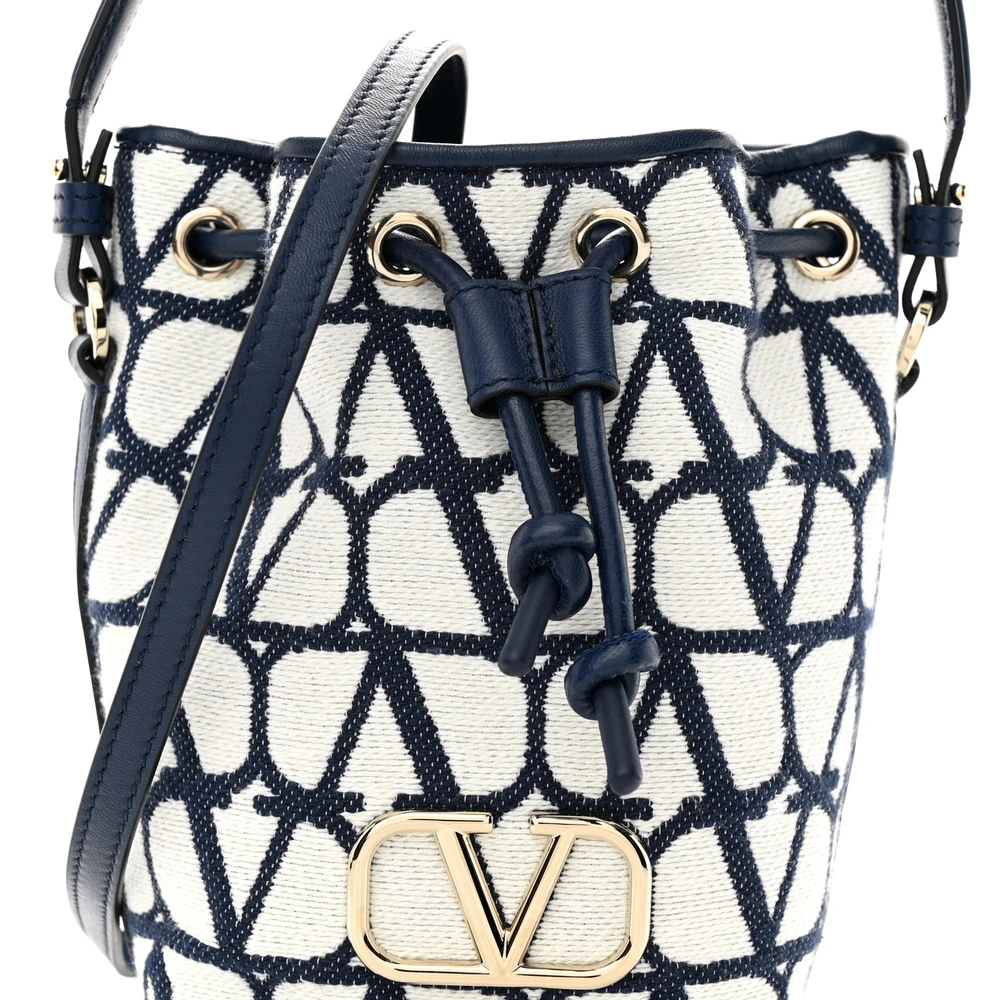 This Valentino Garavani Mini VLogo Signature Bucket Bag in White/Worker is trendy and stylish. Toile Iconographe and nappa leather create a unique design. Compact for carrying essentials in style. Perfect for casual or semi-formal occasions. A versatile addition to any wardrobe.