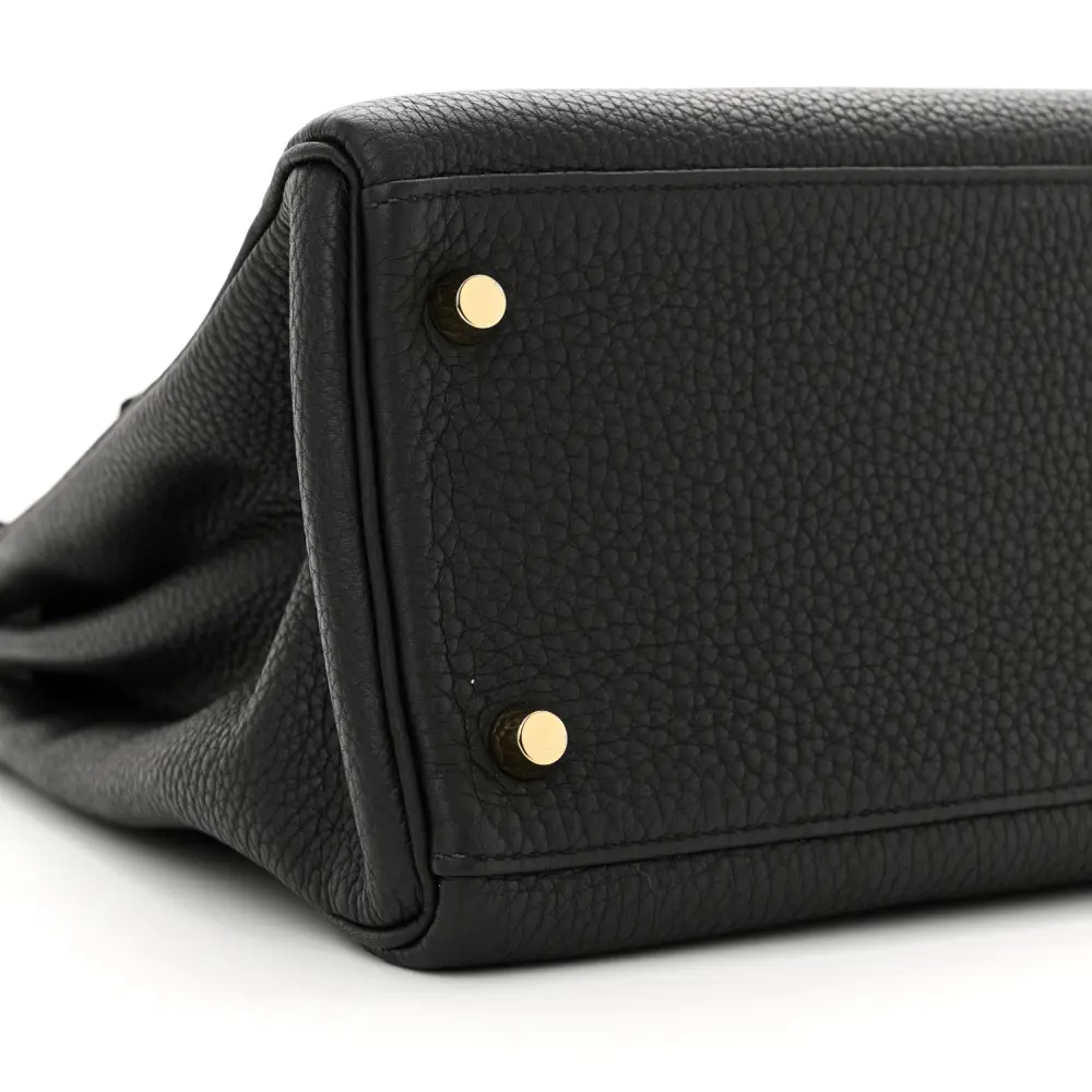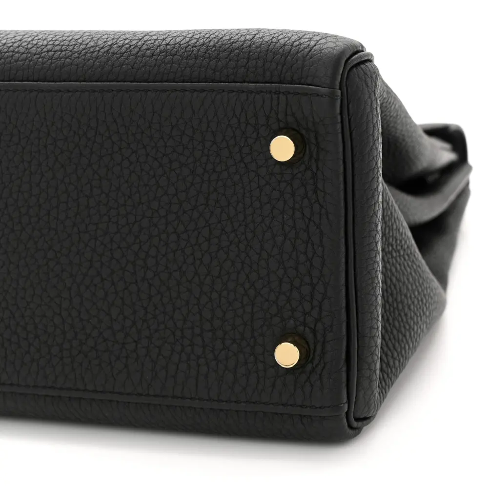 This Hermès Kelly Retourne 32 in Black Togo Leather exudes timeless elegance. The classic black leather is enhanced by gold hardware for a sophisticated touch. Its spacious interior makes it ideal for daily or professional use. Crafted from durable Togo leather, it ensures lasting quality. A structured silhouette adds Hermès charm to any outfit. A must-have piece for luxury enthusiasts.