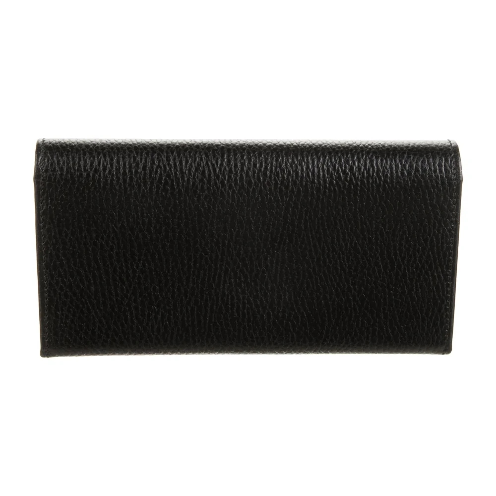 This Gucci Medium Bifold Wallet combines bold design with everyday functionality. Crafted from black GG Marmont leather, it features the brand’s iconic chevron pattern. The gold hardware enhances its sleek aesthetic, making it perfect for daily use. Compact yet spacious, it’s ideal for organizing essentials. This wallet conveys modern Gucci sophistication.