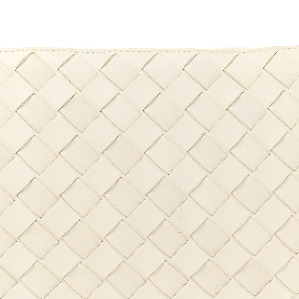 This Bottega Veneta Medium Intrecciato Turn Pouch in White is a perfect blend of sophistication and practicality. Nappa leather and gold hardware enhance its luxurious appeal. The woven texture adds a timeless touch to its elegant design. Spacious enough for essentials, it’s ideal for day-to-evening transitions. A versatile addition to any wardrobe. Redefine your style with this stunning pouch.