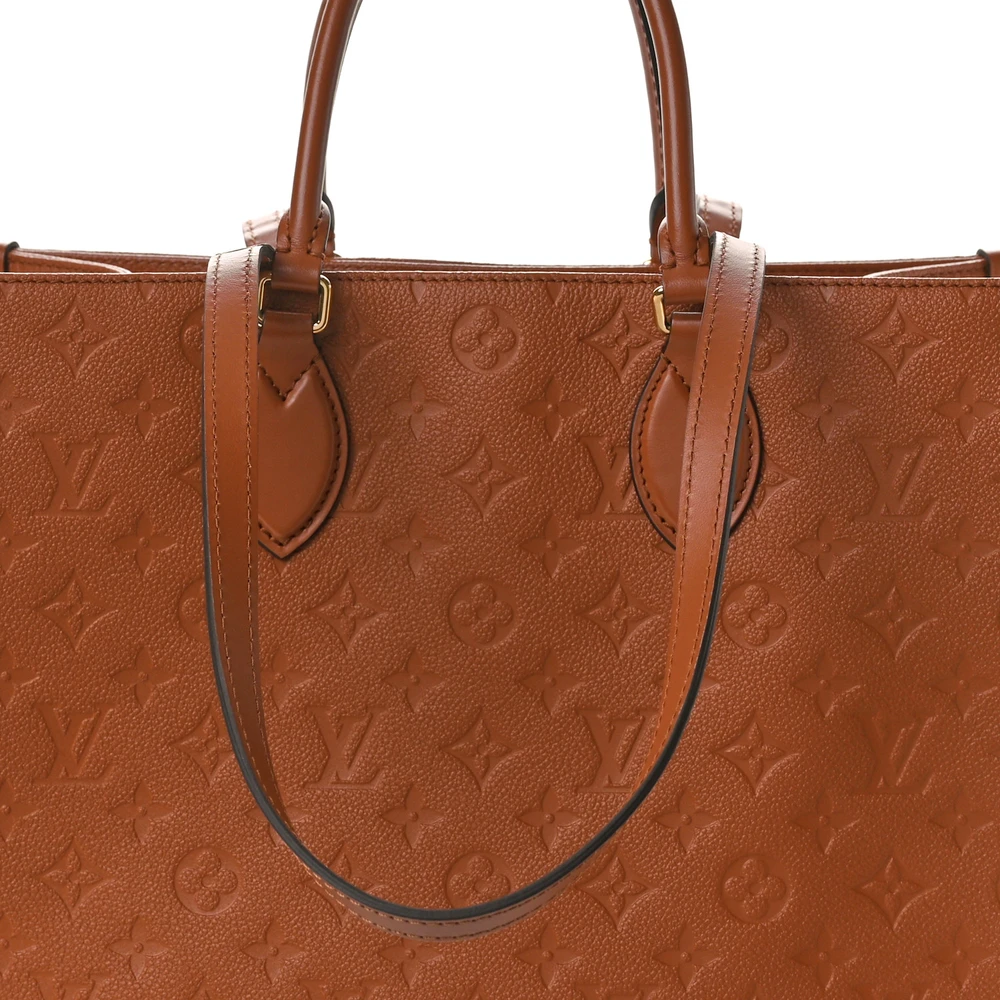 This Louis Vuitton OnTheGo MM Cognac Monogram Empreinte Leather is a stylish and functional tote bag. Made from Monogram Empreinte leather in a rich cognac color, it’s perfect for everyday use. The MM size offers ample space for all your essentials, making it both practical and fashionable. The leather handles and removable shoulder strap provide versatility and comfort. Ideal for work, travel, or leisure, this bag adds a touch of luxury to any outfit. A timeless piece that will never go out of style.