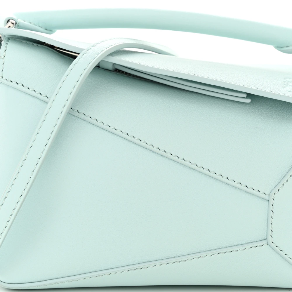 This Loewe Puzzle Bag Mini in Iceberg showcases a refreshing light blue hue in soft calfskin leather. Compact and lightweight, it’s perfect for carrying essentials. The geometric design adds a modern touch to its functionality. Adjustable strap ensures versatile carrying options. Ideal for casual outings or sophisticated looks. A stylish and playful addition to your collection.