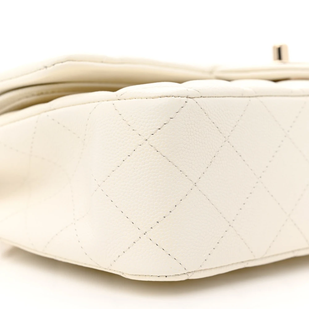 This Chanel Double Flap Medium in White Quilted Caviar Leather with Light Gold Hardware is a refined and elegant choice. The quilted caviar leather ensures durability while maintaining its luxurious appeal. Light gold hardware adds a subtle yet sophisticated touch. Perfectly sized for everyday use or special occasions. A classic design that showcases Chanel’s timeless style. A versatile piece for any collection.