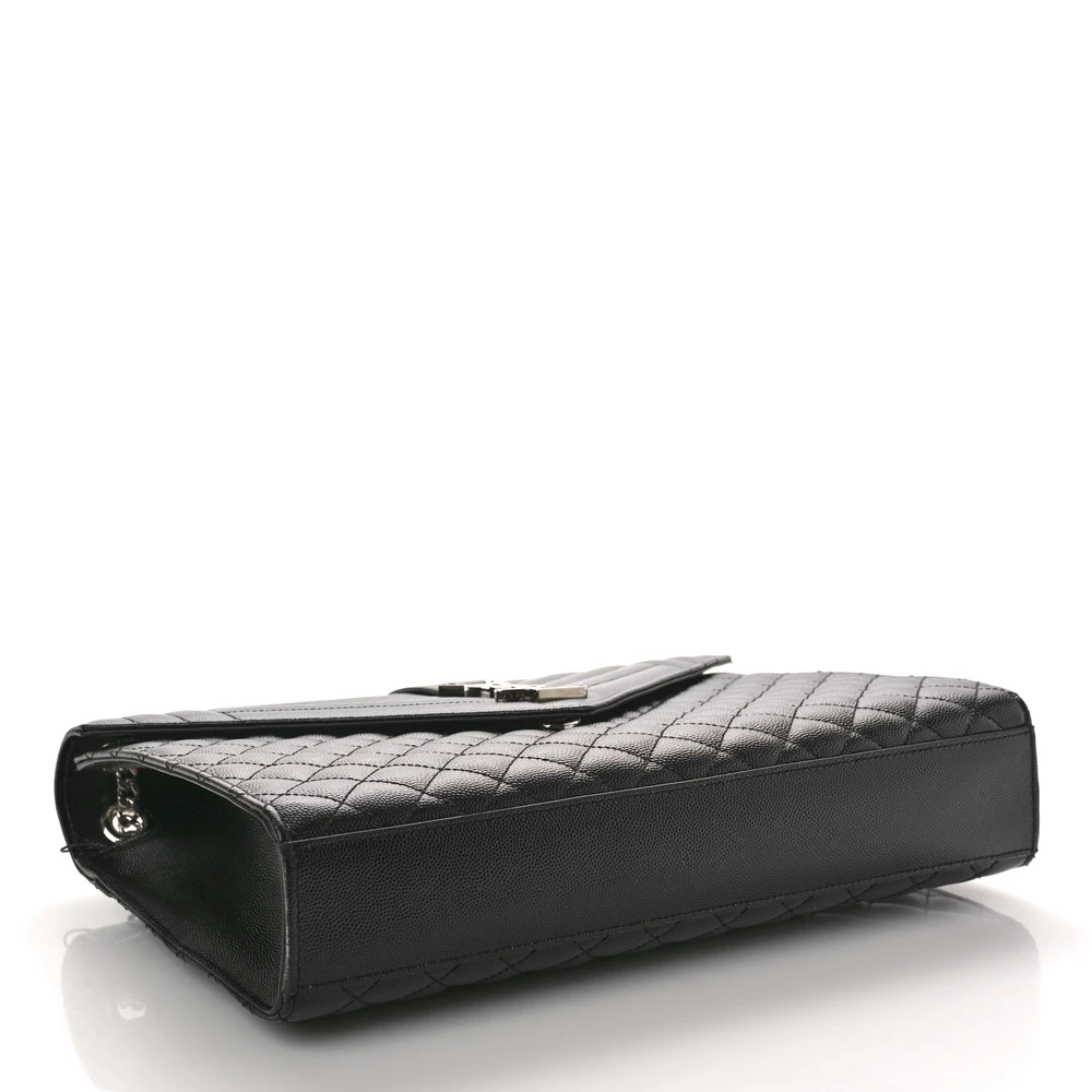 This Large Satchel in Black showcases Triquilt Monogram Grain De Poudre Textured Mixed Matelasse Leather. Silver hardware highlights its refined design, while the spacious interior ensures practicality. Ideal for both professional and casual settings, it is a modern take on a timeless silhouette.