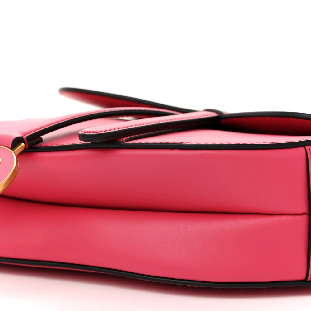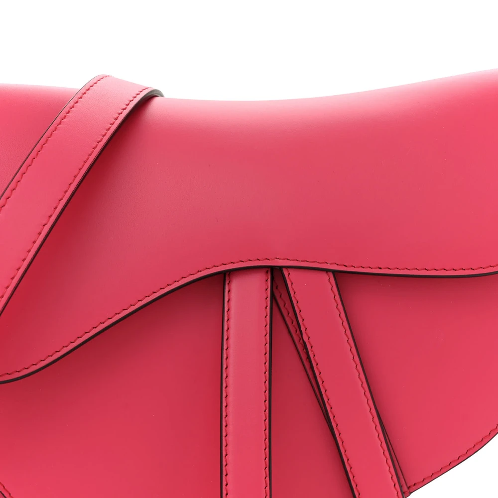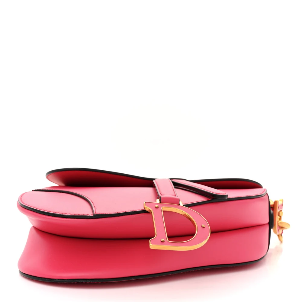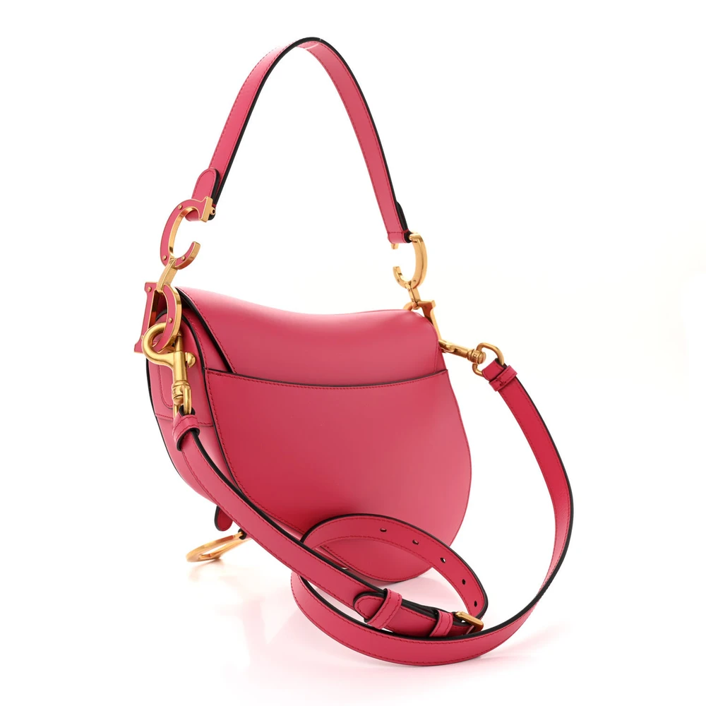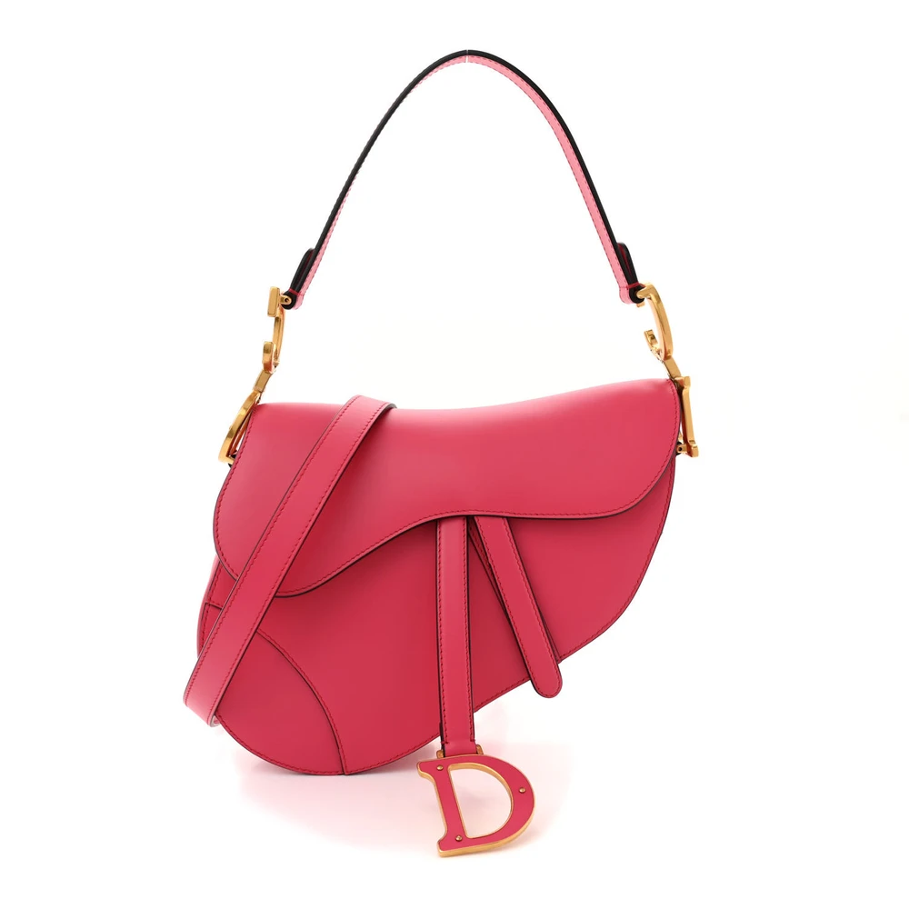 This Dior Medium Saddle Bag With Strap in Fuchsia Smooth Calfskin Leather is a bold and sophisticated choice. Aged gold hardware complements its vibrant color, creating a striking design. Spacious and versatile, it’s perfect for work, travel, or casual outings.