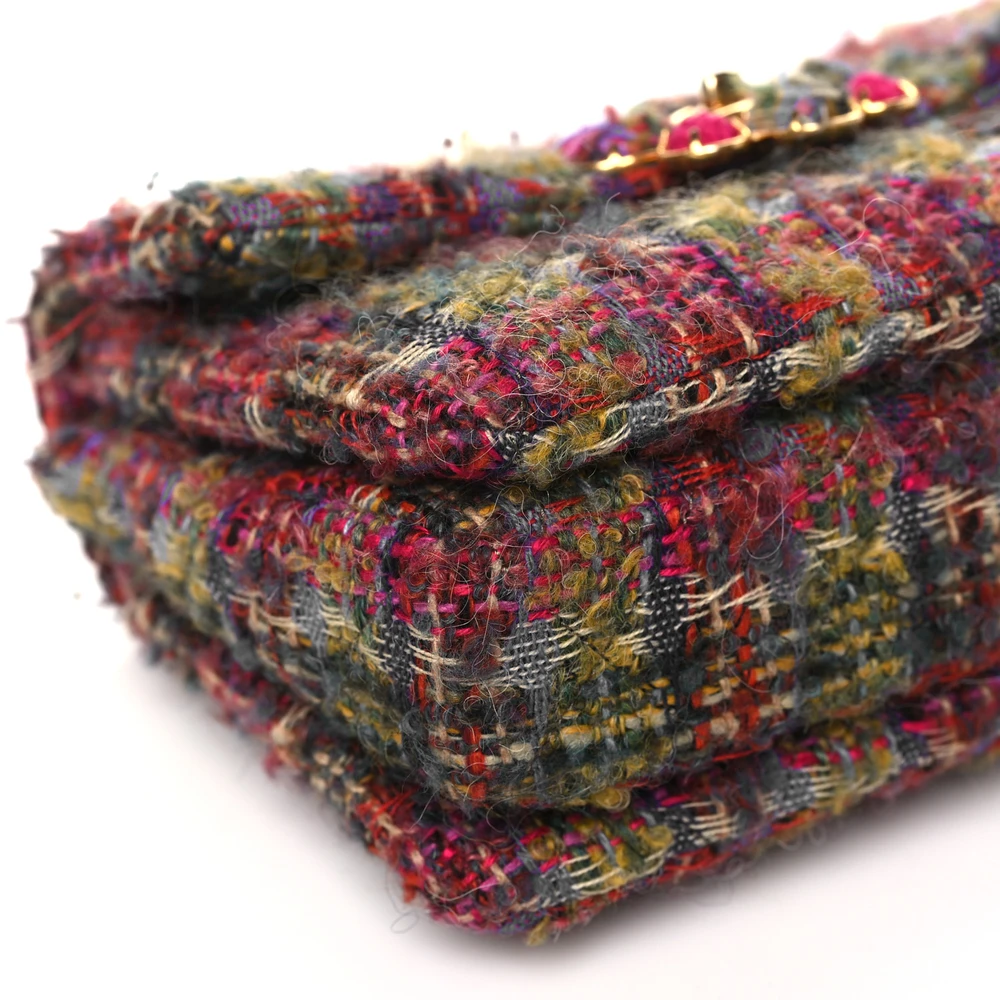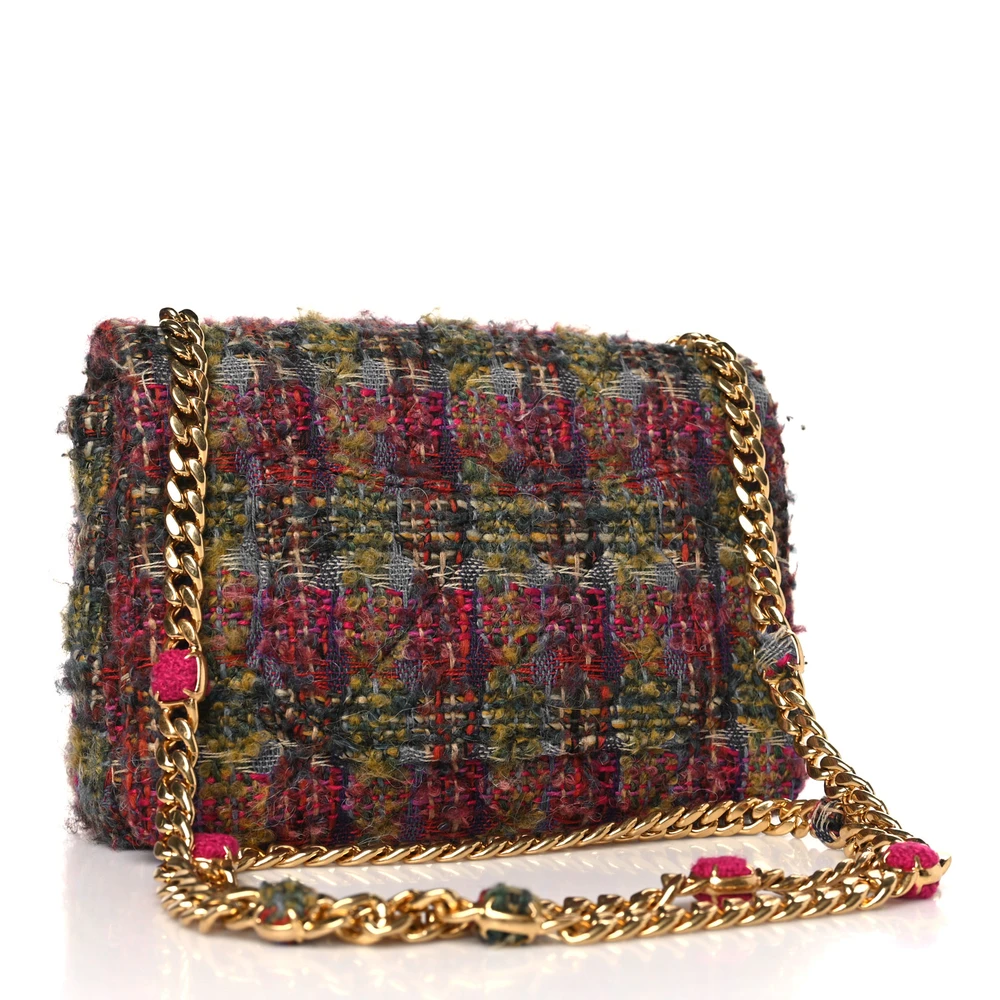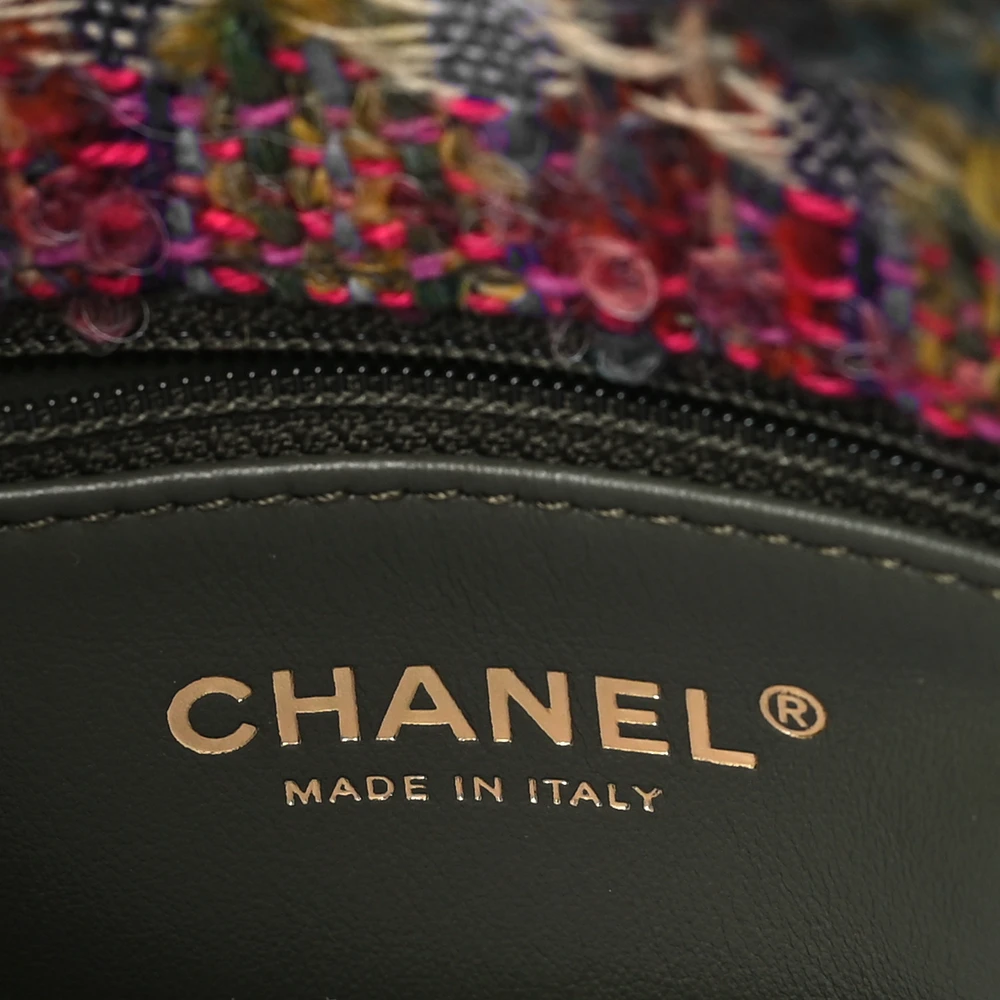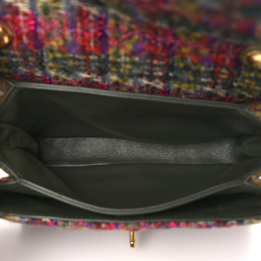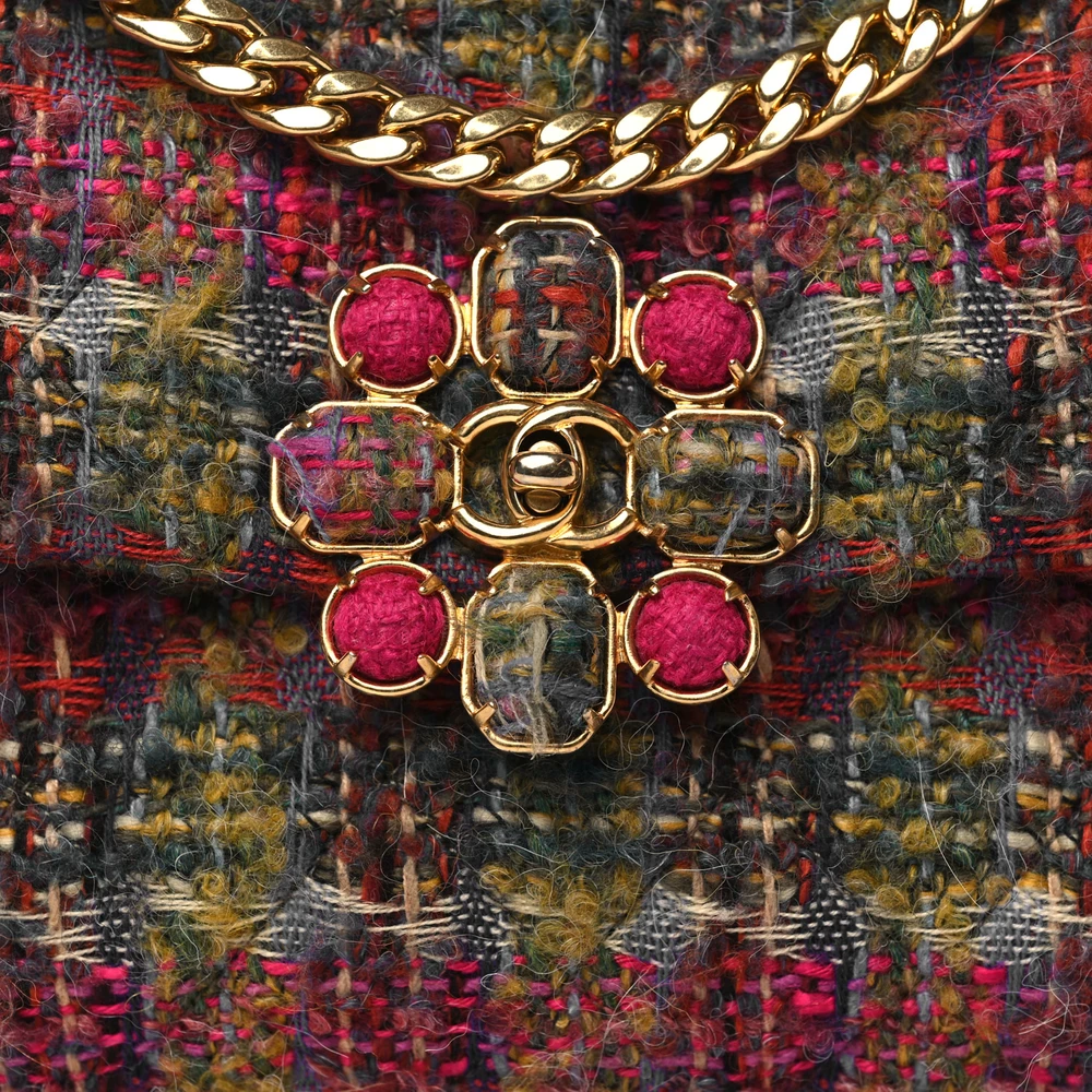 This Chanel Flap Small in Multicolor Quilted Tweed & Wool with Gold Hardware is a vibrant and chic statement piece. The tweed and wool materials feature a playful mix of red, pink, blue, and green tones. Gold hardware adds a touch of luxury, complementing its sophisticated design. Compact yet spacious enough for essentials, it’s perfect for both casual and formal occasions. The classic flap closure ensures security while maintaining its iconic style. A standout piece for those who love unique Chanel designs.