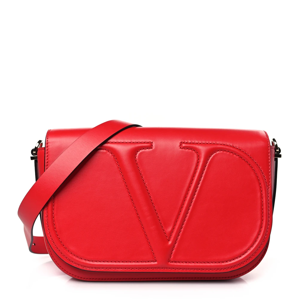 This Valentino Garavani Medium VLogo Walk Shoulder Bag in Rouge Pur is refined. Calfskin leather and gold hardware create a sleek design. Spacious interior fits all your daily essentials. Adjustable strap for versatile styling options. Perfect for work or formal events. A bold yet classic addition to your collection.