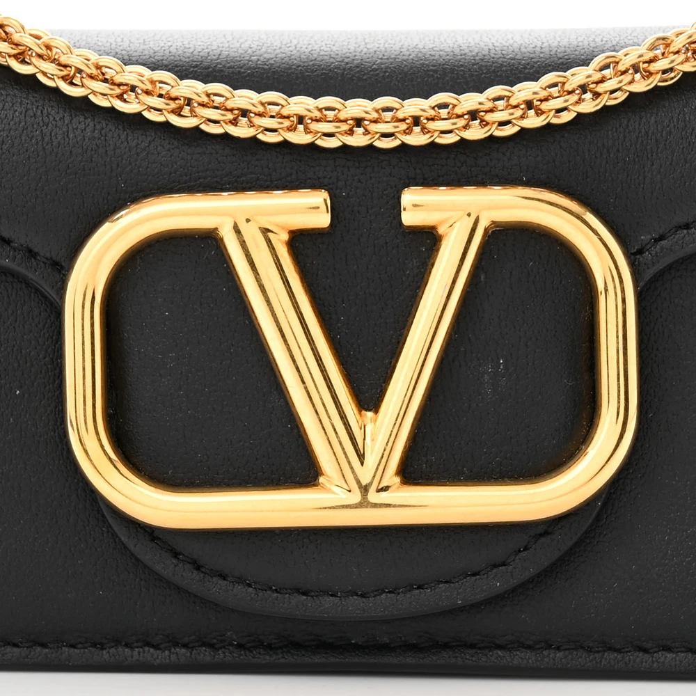 This Valentino Garavani Micro VLogo Locò Shoulder Bag in Black is compact and stylish. Crafted from calfskin leather with gold hardware. Perfect for carrying essentials in style. Blends seamlessly with casual or formal outfits. A versatile addition to any wardrobe. Combines practicality with timeless elegance.