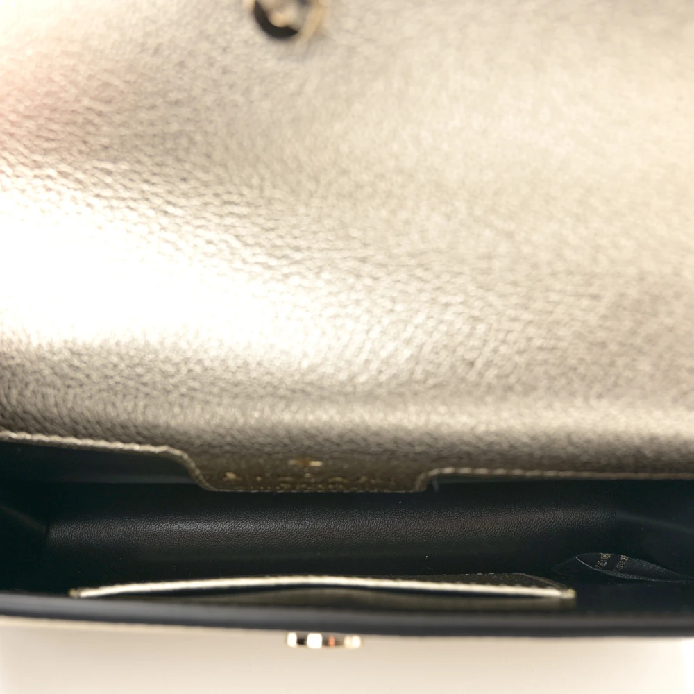 This Bvlgari Mini Snake Strap Crossbody Flap Clutch in Metallic Gold is a glamorous accessory for any occasion. Made from luxurious calfskin leather, it features a unique snake strap detail and the iconic Serpenti clasp in gleaming gold. The metallic gold finish adds a striking edge, making it a perfect companion for evening events. Compact yet functional, it effortlessly combines style and practicality. Elevate your ensemble with this timeless Bvlgari creation.