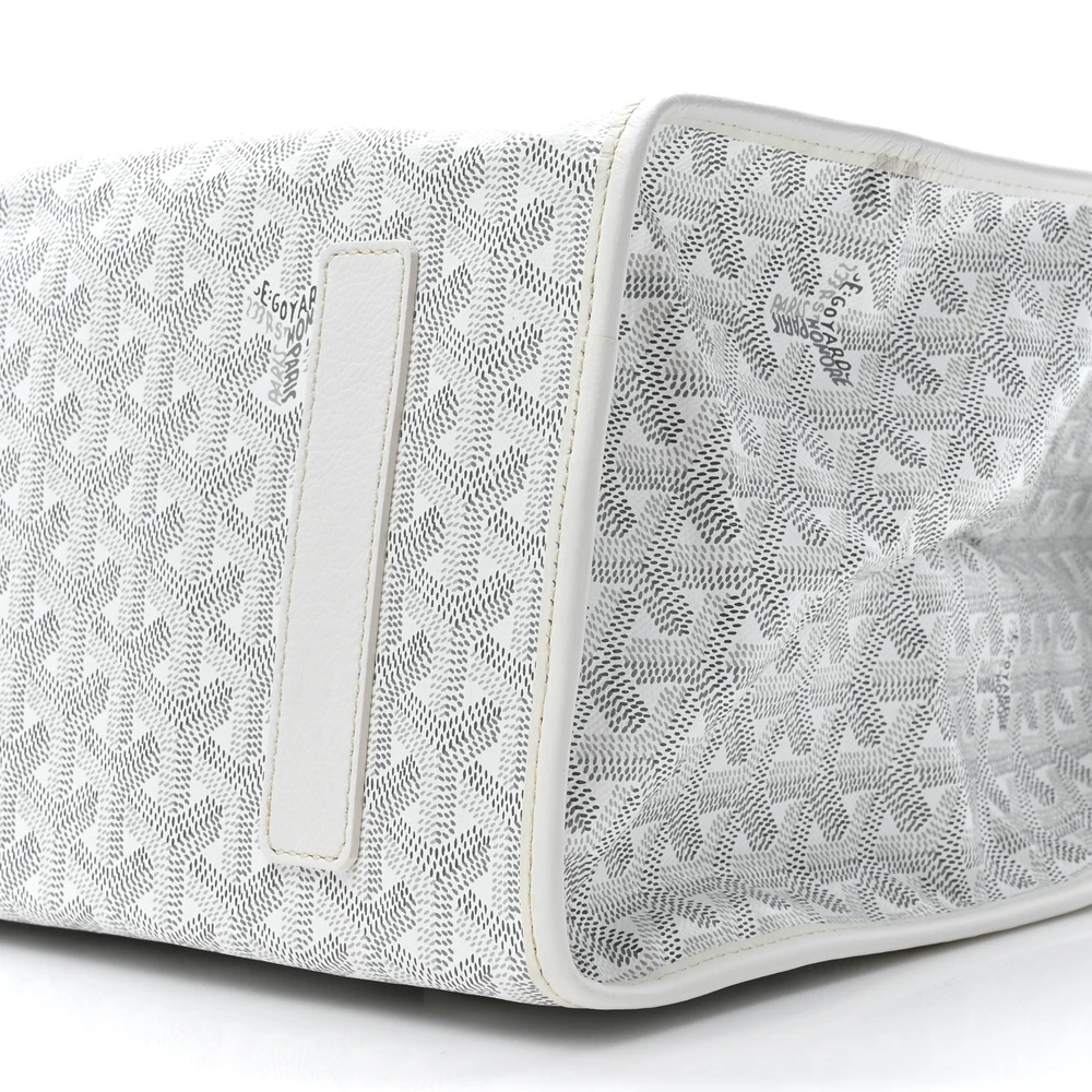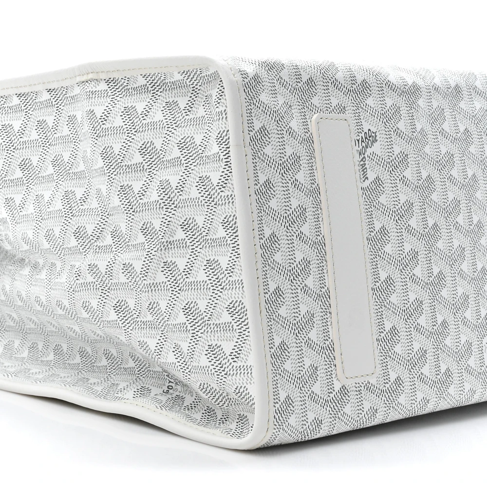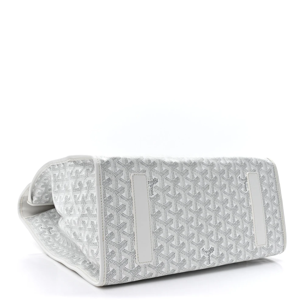 This Goyard Saint Leger Soft Briefcase Backpack MM in White features Goyardine canvas with silver hardware for a sleek and modern look. Its convertible design offers versatility as both a briefcase and backpack. Spacious and functional, it’s ideal for work or travel. A stylish and practical choice.