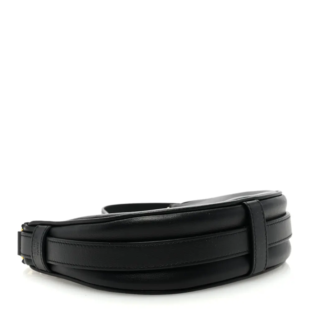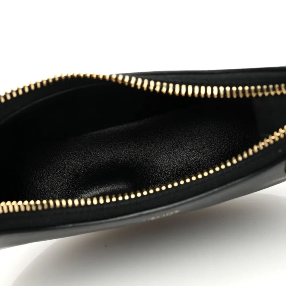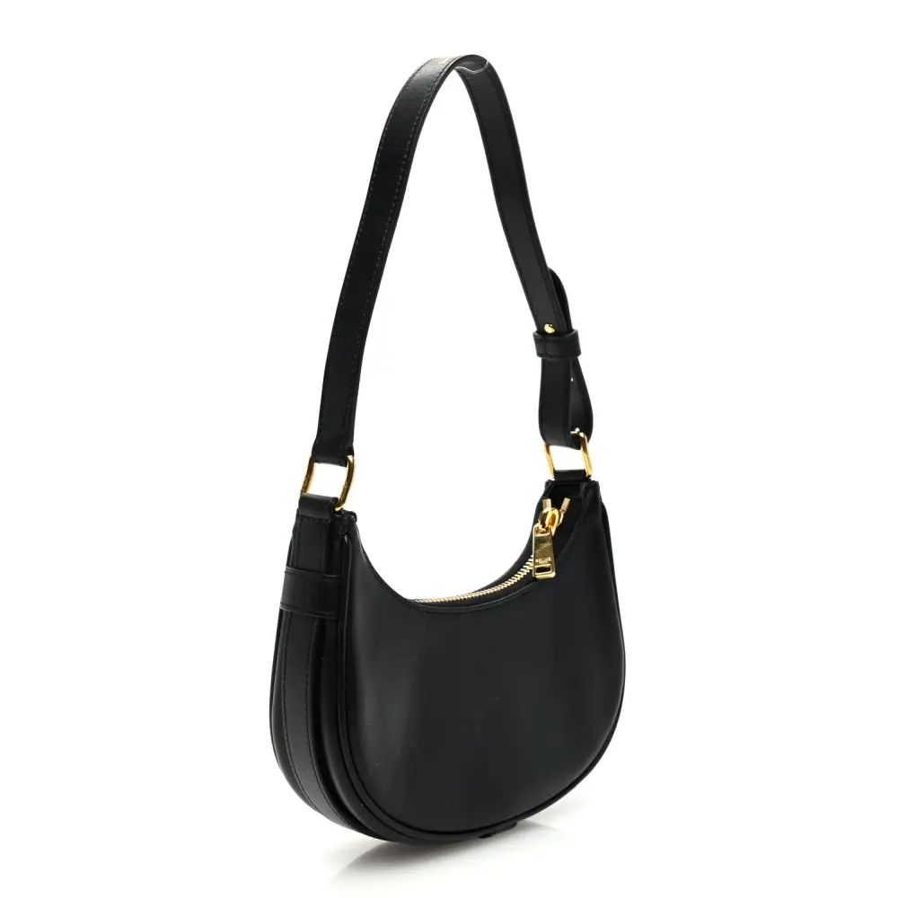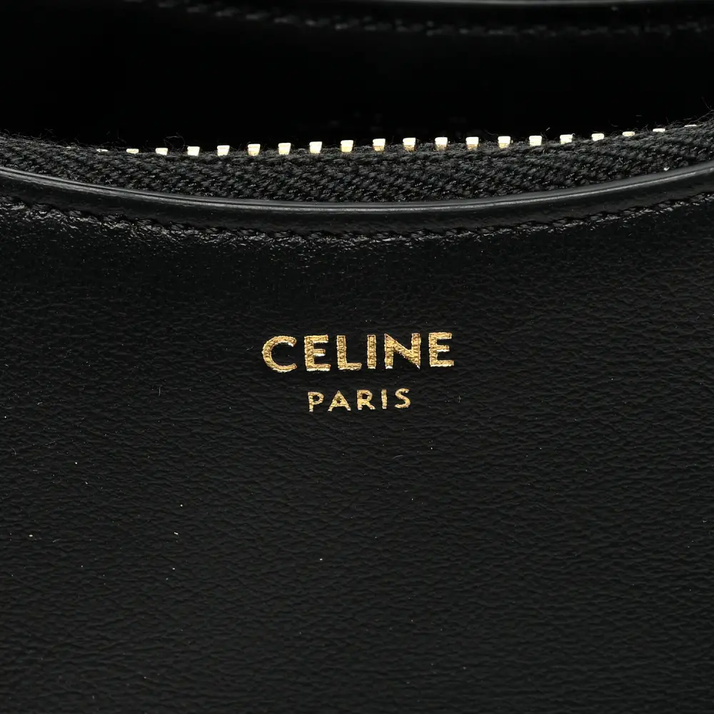 This Celine Mini Ava Shoulder Bag in Black features smooth calfskin leather with gold hardware. Its compact design offers timeless elegance. Spacious enough for essentials, it’s ideal for daily use. The adjustable strap adds versatile styling. A sleek and modern accessory for any wardrobe.