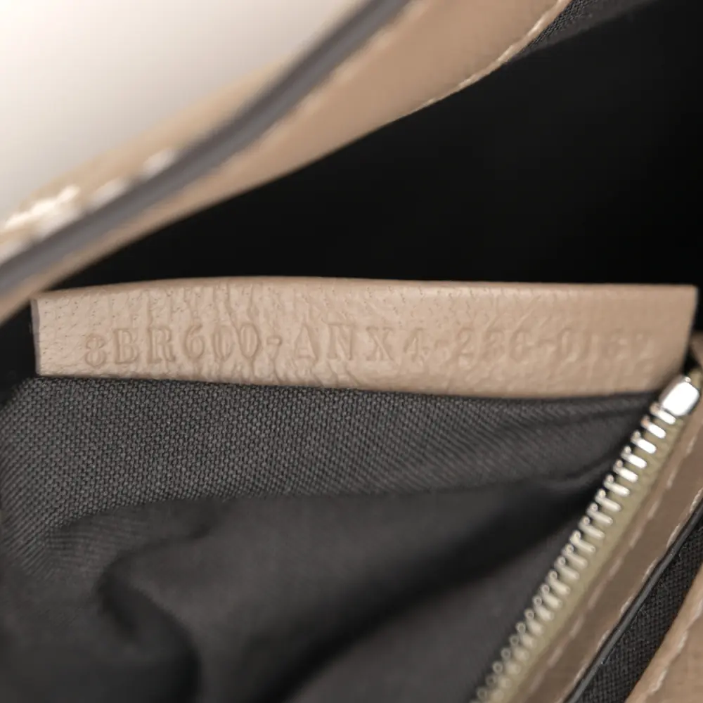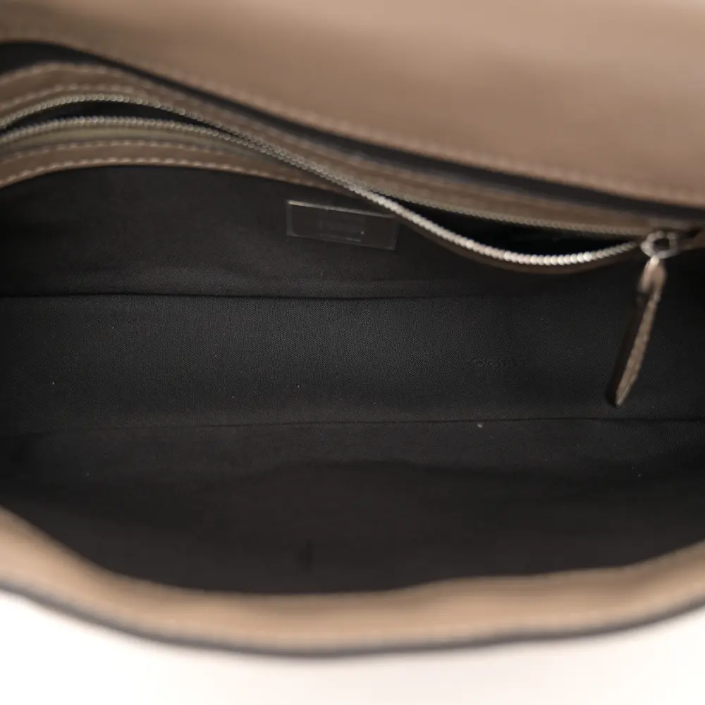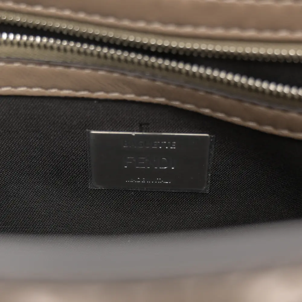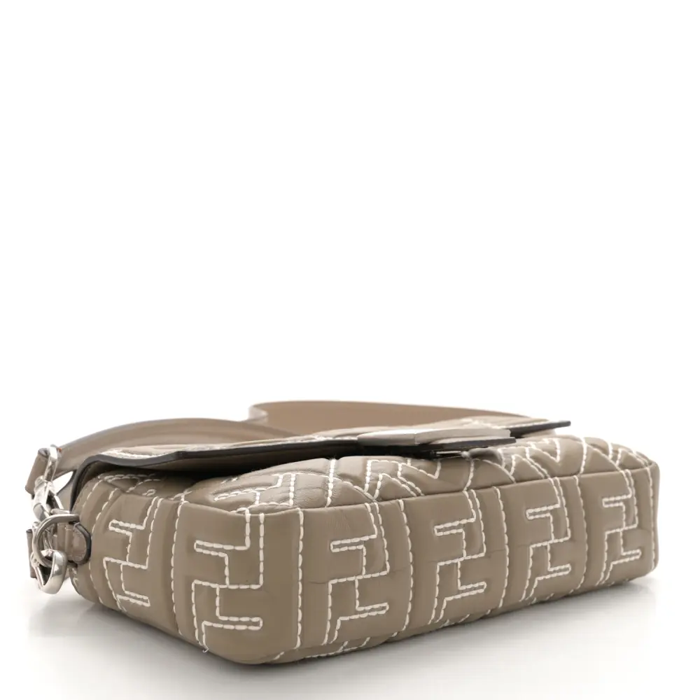 This Fendi FF 1974 Embossed Stitched Baguette in Tortora Nappa Leather is timelessly elegant. Silver hardware highlights its sophisticated texture and design. Compact yet functional, it’s perfect for essentials. The iconic silhouette ensures effortless versatility. Its neutral tone complements any outfit beautifully. A luxurious choice for every occasion.
