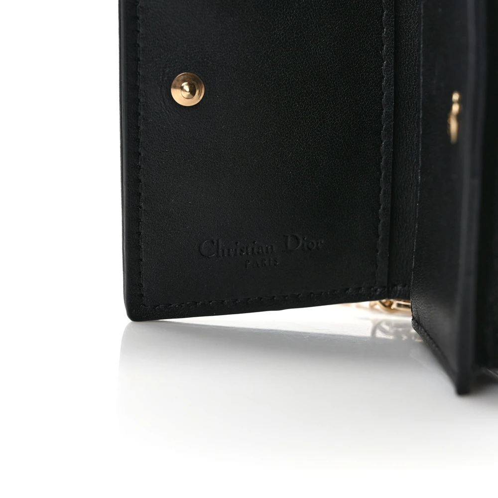 This Dior Small Lady Dior Flap Card Holder in Black Cannage Lambskin combines practicality with elegance. Gold hardware enhances its luxurious finish, reflecting Dior’s craftsmanship. Compact and lightweight, it’s perfect for cards and small essentials. The iconic Cannage stitching adds a timeless aesthetic. A chic and functional addition to your accessories collection. Elevate your everyday essentials with Dior style.