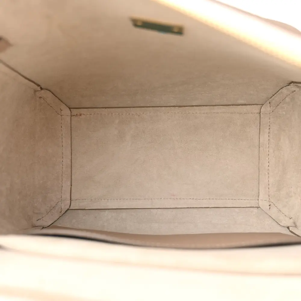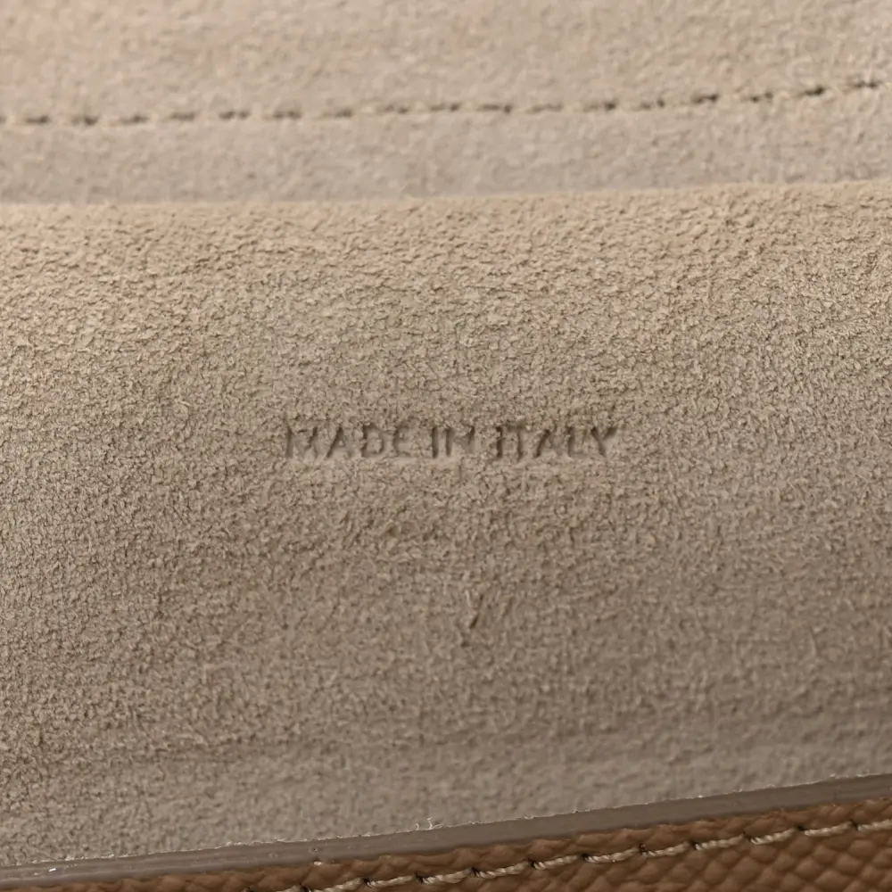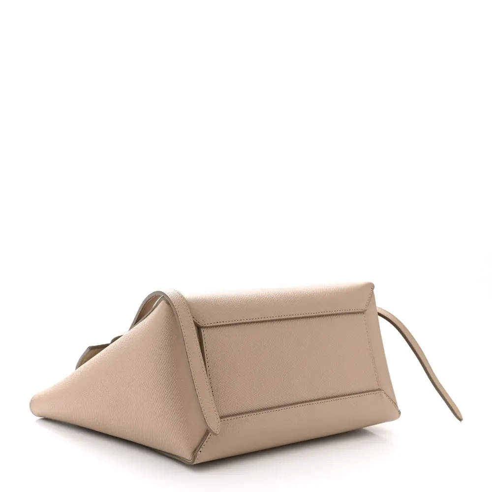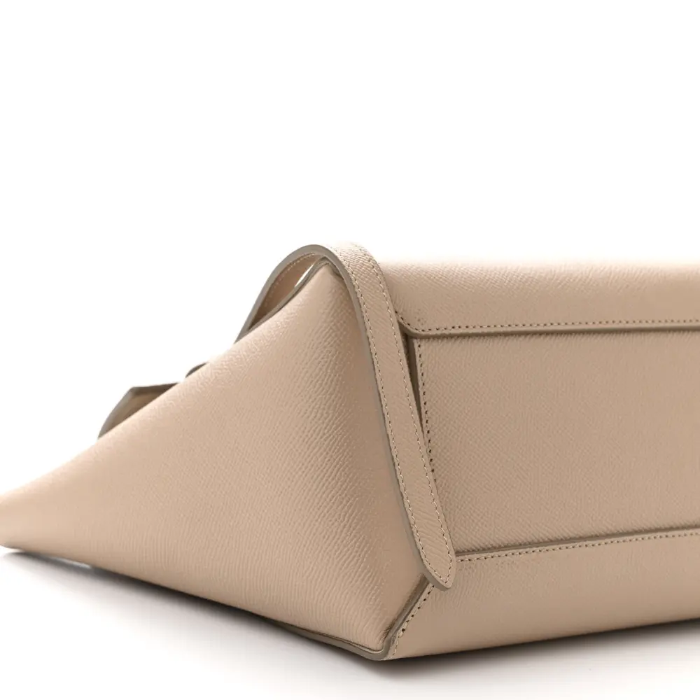 This Celine Micro Belt Bag in Light Taupe is crafted from grained calfskin leather with gold hardware. Its structured design includes a top handle and flap closure. Spacious and practical, it’s perfect for daily use. The adjustable strap adds crossbody versatility. A sleek and timeless addition to any collection.