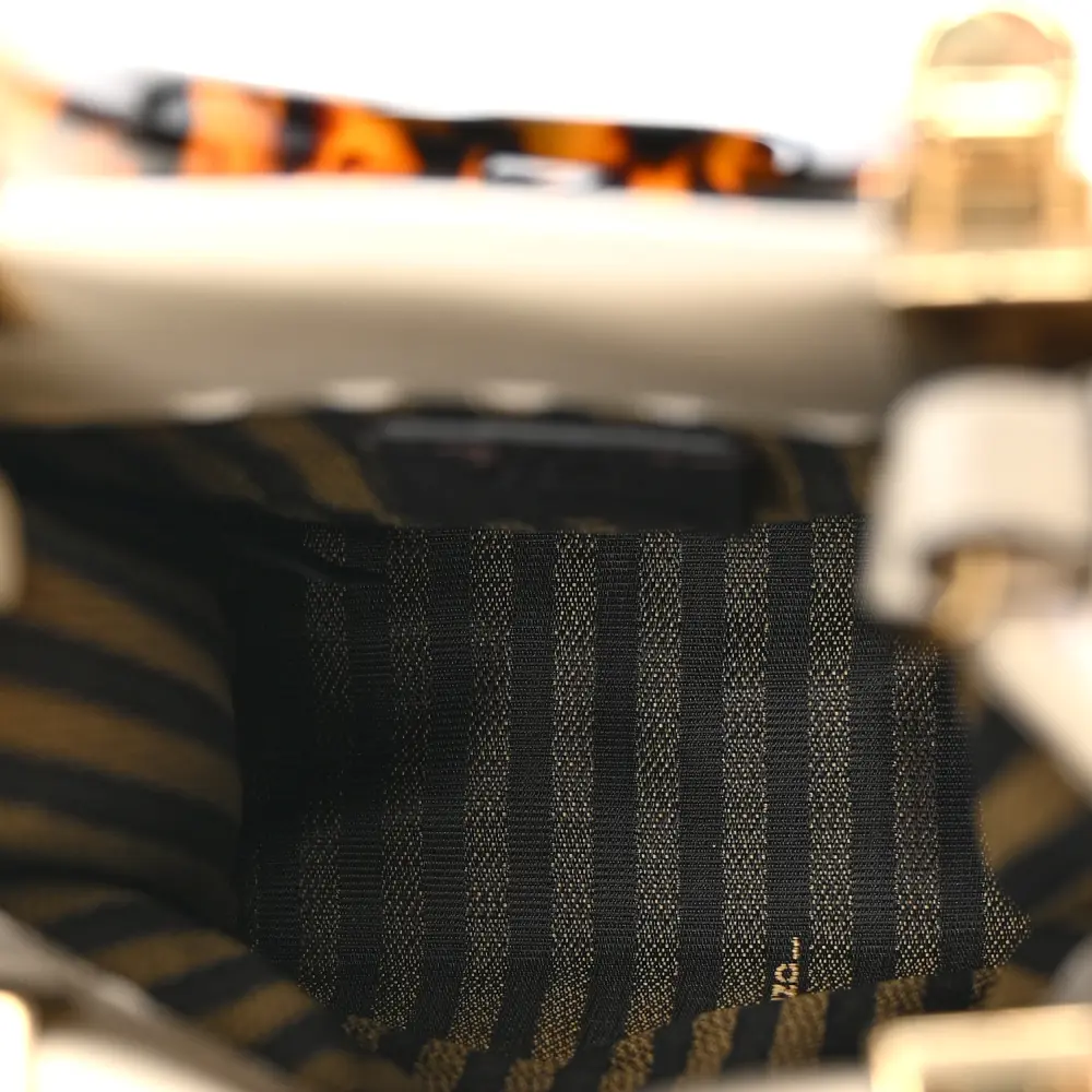 This Fendi Mini FF 1974 Backpack in Tobacco/Black Macro Shearling is cozy and stylish. Gold hardware accents its unique texture and design. Spacious yet compact, it’s perfect for carrying essentials. Adjustable straps offer versatile, comfortable wear. Ideal for casual or playful looks. A delightful choice for adding warmth to your wardrobe.