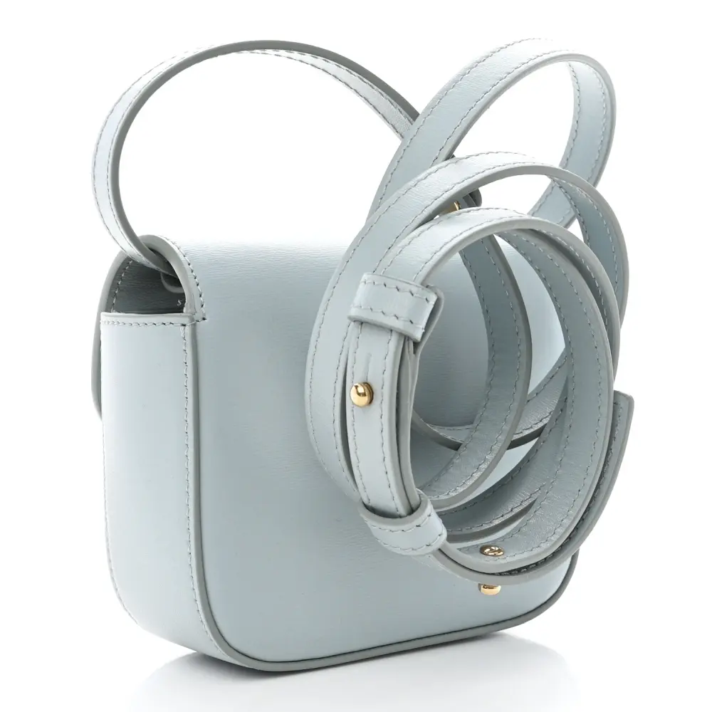 This Celine Mini Triomphe Bag in Soft Blue showcases shiny calfskin leather and gold hardware. Its elegant and compact design is perfect for daily use. A refined choice for a modern wardrobe.