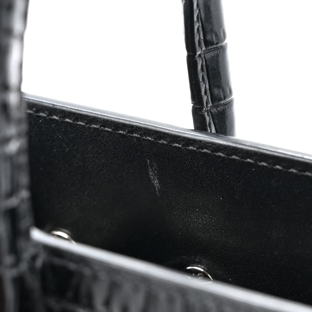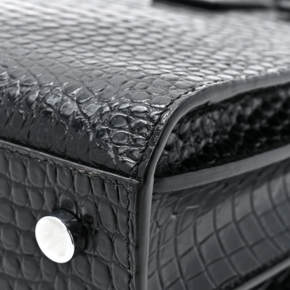This Small Sac De Jour in Black showcases Embossed Calfskin & Crocodile Leather with silver hardware. The structured silhouette and spacious interior make it a functional yet stylish choice. Perfect for work or everyday use, it exudes sophistication with its sleek design and luxurious texture.