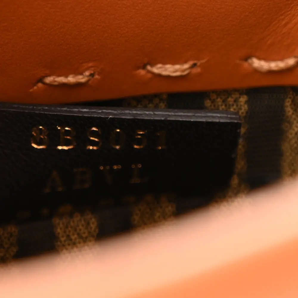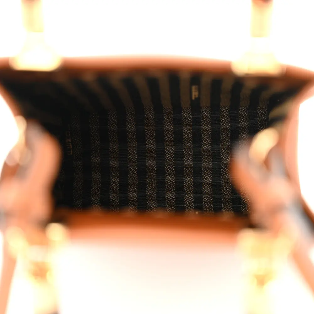 This Fendi Small FF 1974 Embossed Kan U Shoulder Bag in Maya/Black Liberty Vitello Leather is bold and stylish. Gold hardware enhances its bi-color design. Compact yet practical for essentials, it suits day-to-night transitions. Adjustable strap offers versatile carrying options. Elegant and structured, it complements any outfit. A modern twist on a classic silhouette.