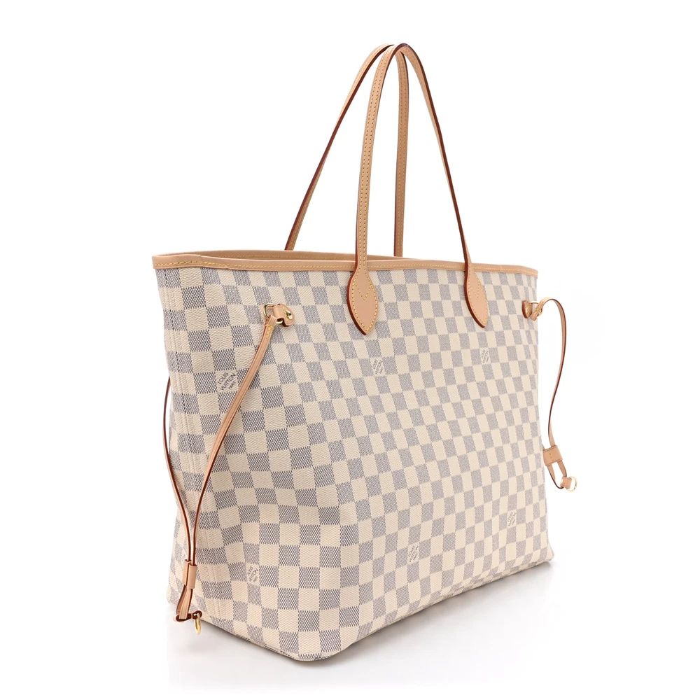 This Louis Vuitton Neo Neverfull GM Damier Azur Canvas Beige Interior is a spacious and elegant tote. Crafted from Damier Azur canvas, it features a light beige interior and a roomy design that makes it perfect for carrying your daily essentials in style.