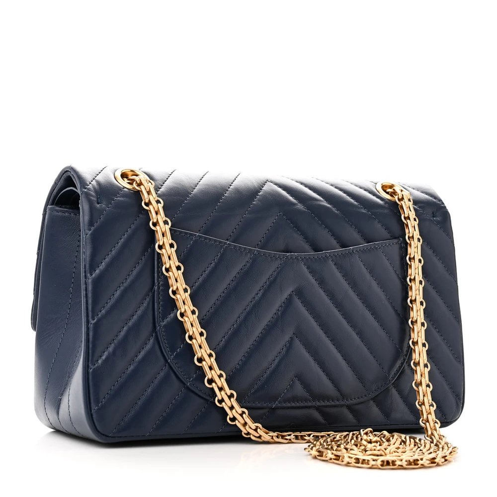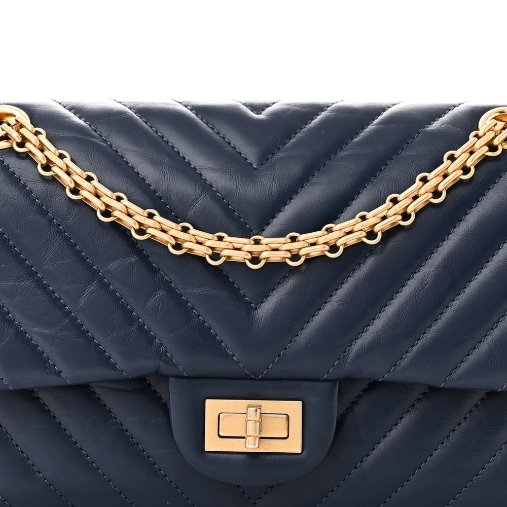 This Chanel 2.55 Reissue 225 Flap Medium in Blue Chevron Quilted Aged Calfskin Leather with Matte Gold Hardware is a refined and elegant piece. The chevron quilting adds texture to the aged calfskin leather, creating a vintage-inspired look. Matte gold hardware complements its sophisticated design. Spacious and versatile, it’s perfect for day-to-evening wear. The reissue closure adds a touch of heritage to its modern appeal. A timeless choice for Chanel collectors.