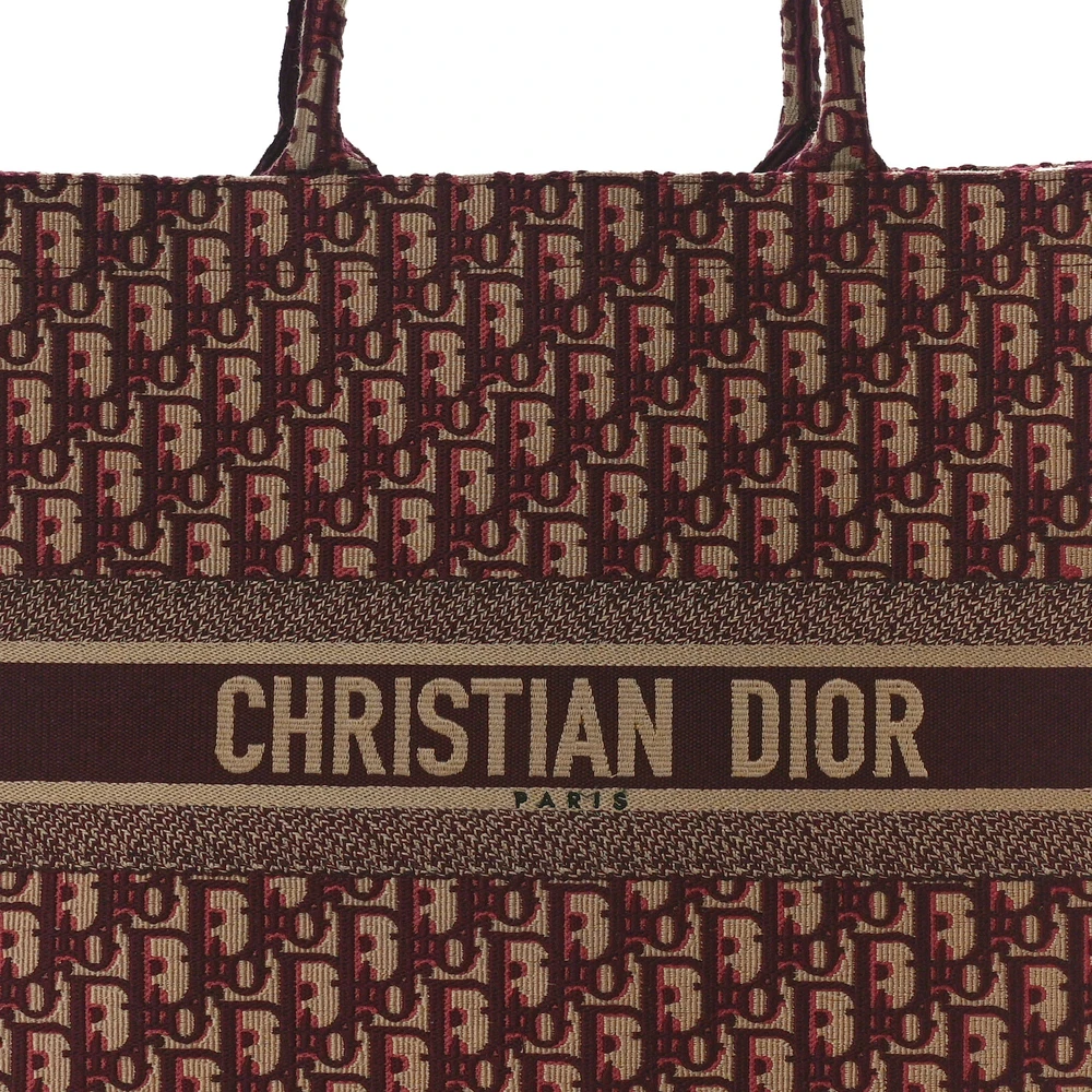 This Dior Large Book Tote in Burgundy Multicolor Oblique Canvas is a bold statement piece. The intricate Oblique pattern adds a distinctive touch to its spacious design. Ideal for work, travel, or daily use, it combines style with functionality. Durable canvas ensures it withstands frequent use. A testament to Dior’s heritage and craftsmanship. Carry your essentials in luxury with this iconic tote.