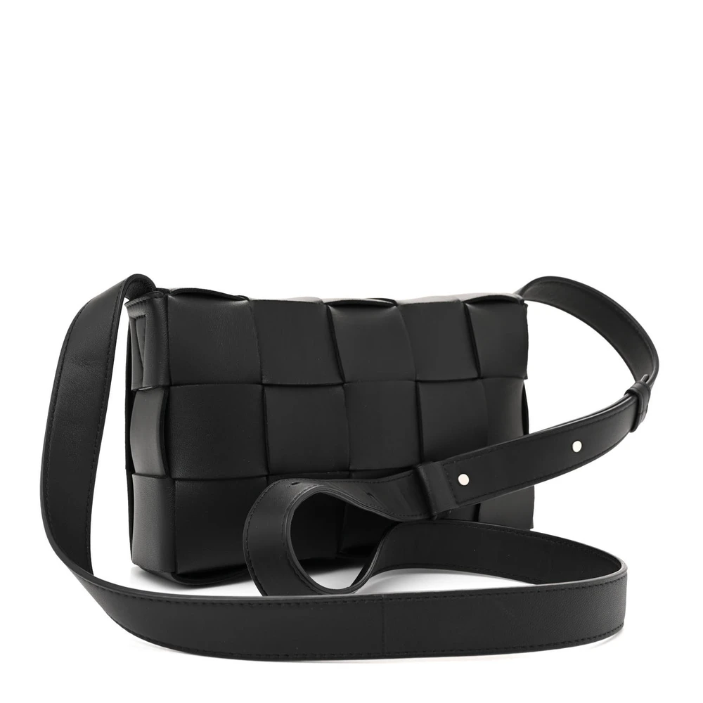 This Bottega Veneta Maxi Intrecciato Cassette Crossbody Bag in Black offers a bold yet sophisticated look. Lambskin leather and oversized woven details make it a statement accessory. Spacious and versatile, it’s ideal for carrying daily essentials. The sleek black tone enhances its timeless appeal. Perfect for elevating casual and formal outfits alike.
