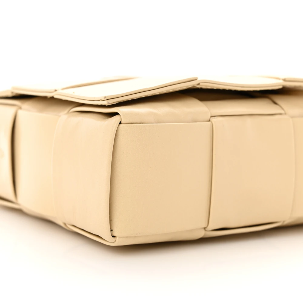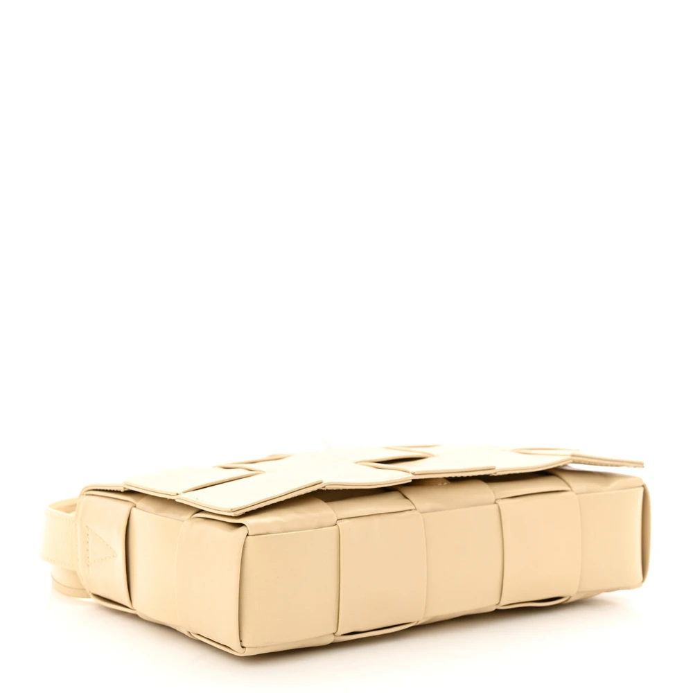 This Bottega Veneta Maxi Intrecciato Cassette Crossbody Bag in Porridge offers bold design with timeless appeal. Made from paper calfskin leather, it features oversized woven detailing. Spacious and practical, it’s ideal for carrying essentials. The adjustable strap adds versatility to its modern silhouette. A statement piece for the fashion-forward. Enhance your collection with this iconic bag.
