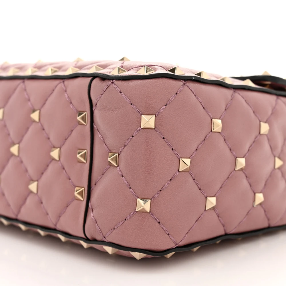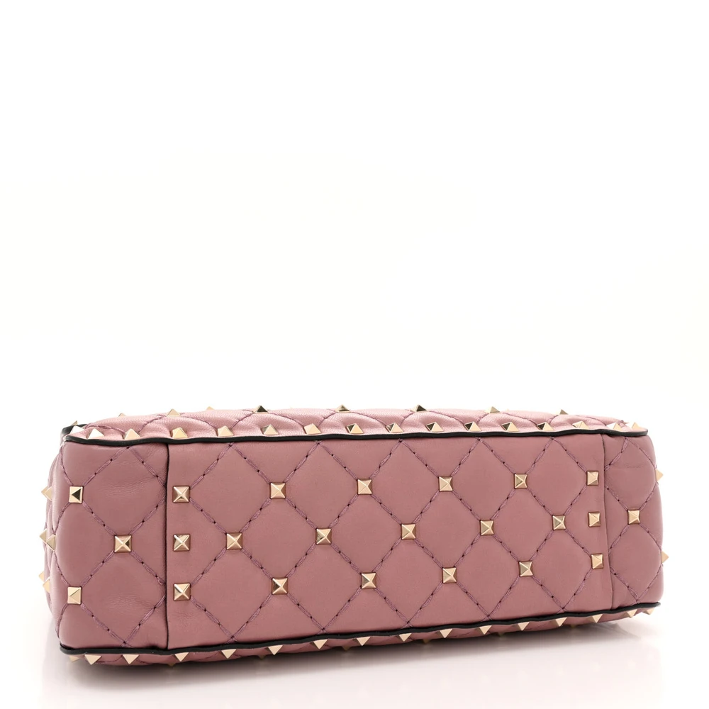 This Valentino Garavani Medium Rockstud Spike Shoulder Bag in Antique Rose is feminine. Lambskin leather with light gold hardware creates a soft, elegant look. Spacious interior fits your daily needs. Rockstud detailing adds an edgy twist. Perfect for day-to-evening transitions. A versatile addition to your wardrobe.