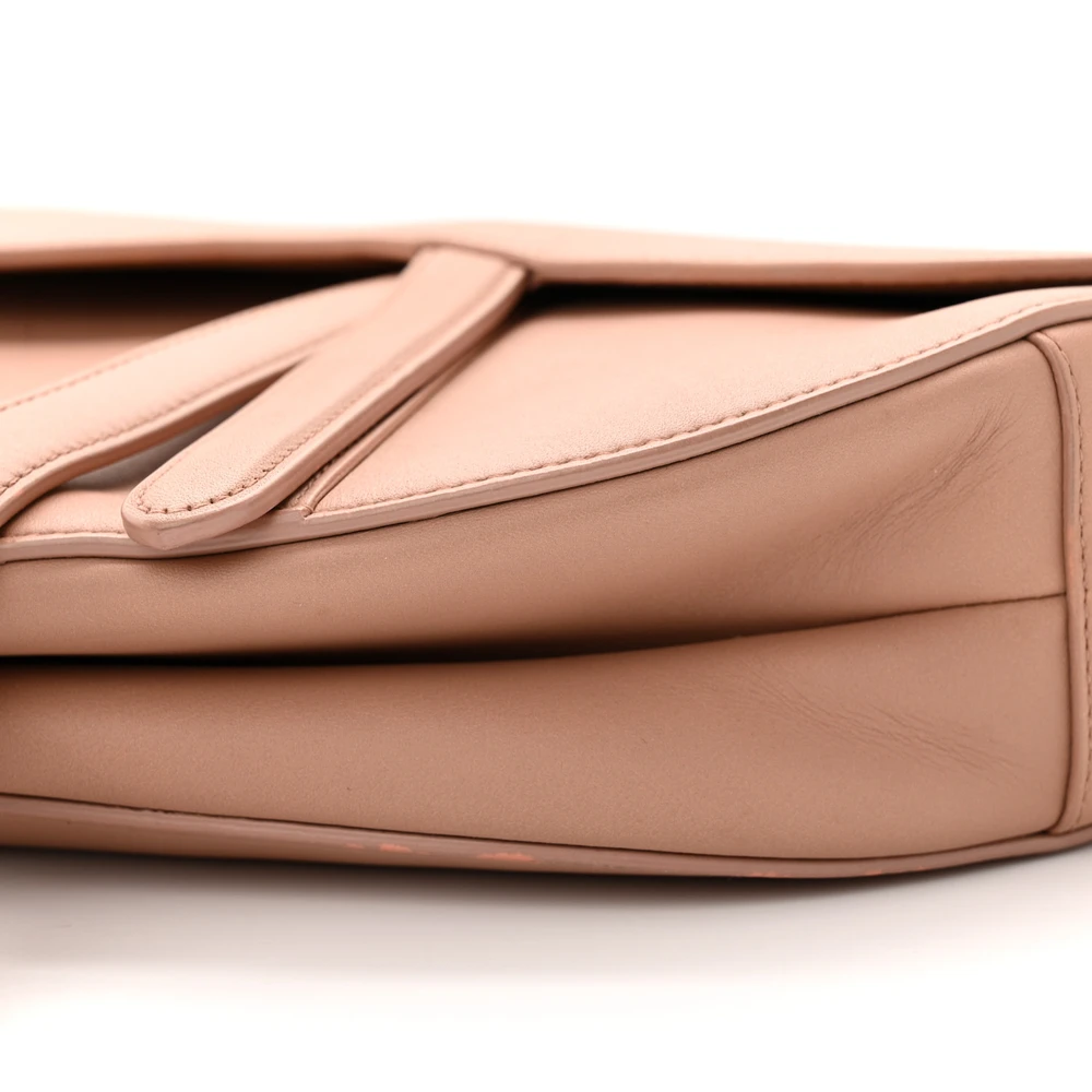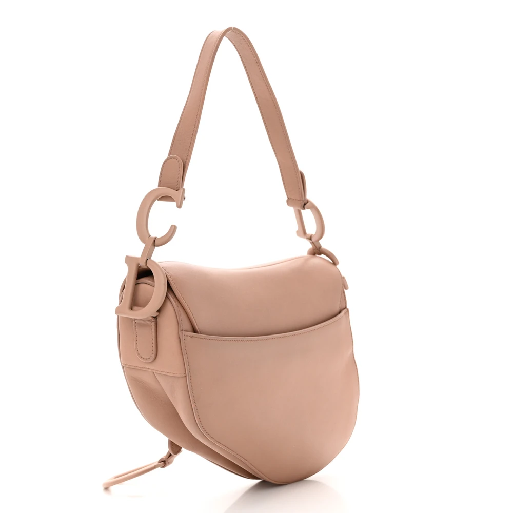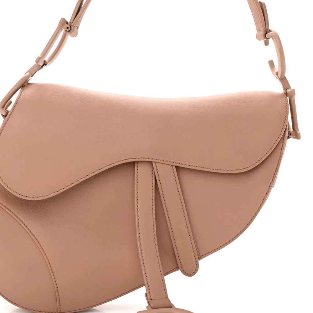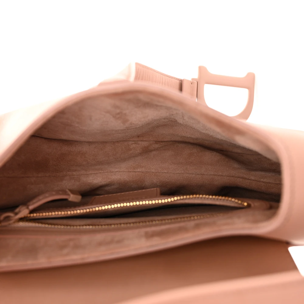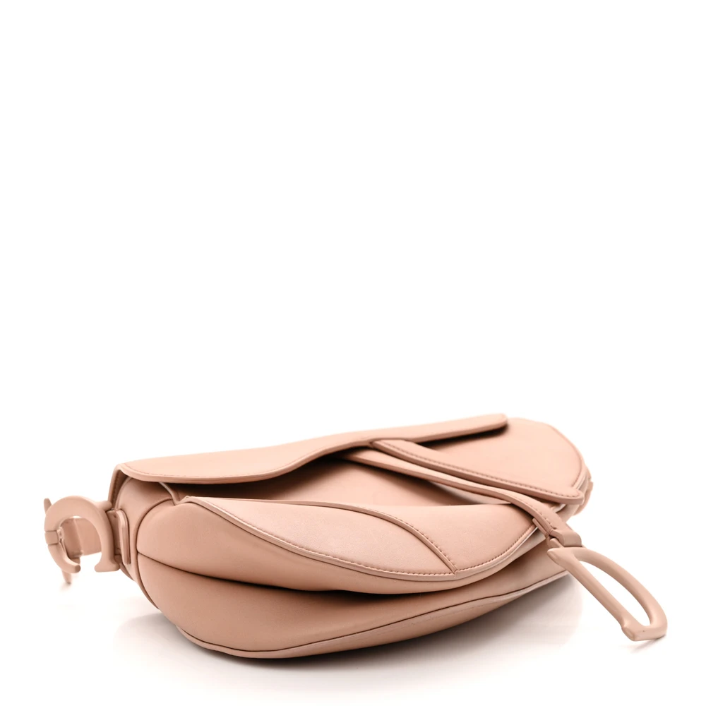 This Dior Medium Saddle Bag in Blush Ultra Matte Calfskin Leather offers understated elegance. Matte beige hardware completes its refined design. A timeless addition to any wardrobe for modern sophistication.