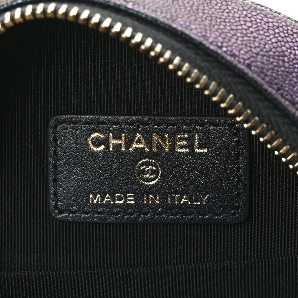 This Chanel Round Clutch With Chain Mini in Black Quilted Caviar Leather with Light Gold Hardware is a playful yet sophisticated accessory. The durable caviar leather and round silhouette make it a standout piece. Light gold hardware enhances its elegant appeal, perfect for both casual and formal settings. The compact interior is ideal for small essentials like cards and lipstick. The chain strap offers hands-free versatility, adding to its practicality. A stylish addition to any Chanel lover’s collection.