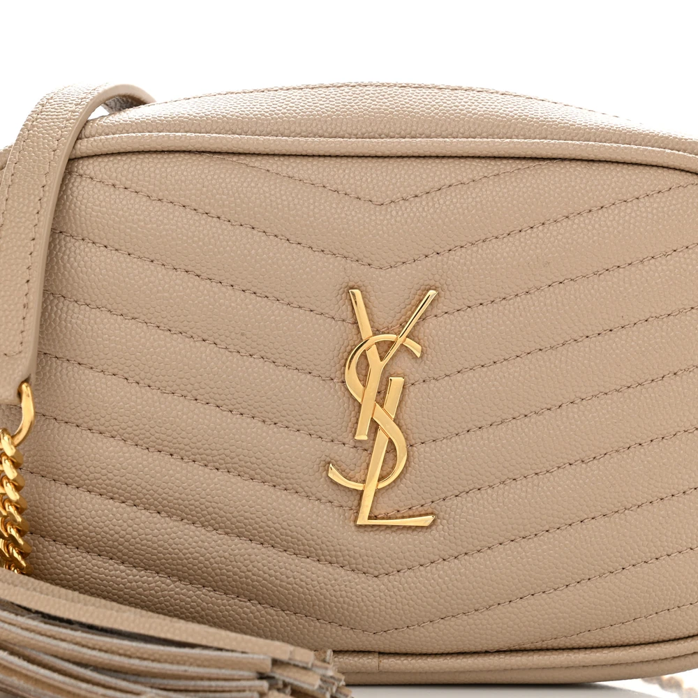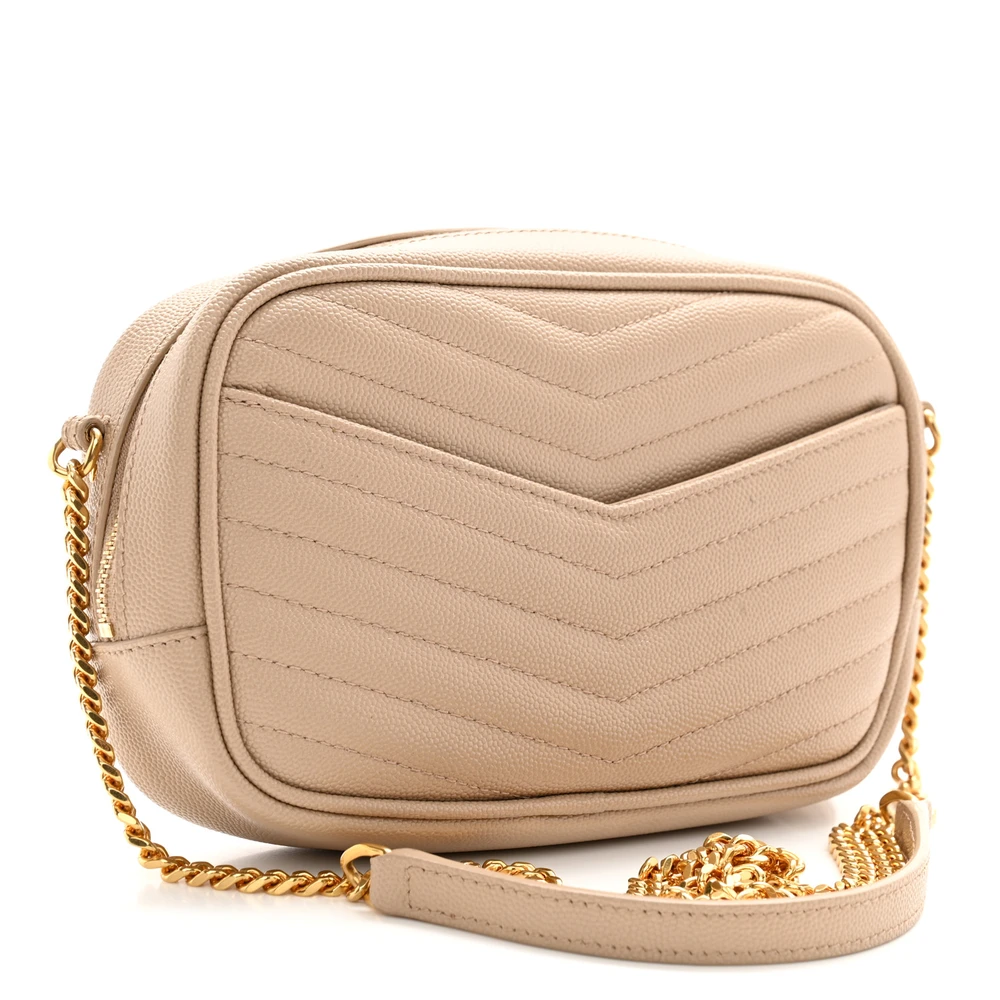This Mini Lou Camera Bag in Dark Beige features Monogram Grain De Poudre Matelasse Leather with gold hardware for an elegant touch. Its compact design includes a zippered compartment and card slots for convenience. The adjustable strap allows for versatile crossbody styling, making it ideal for on-the-go use. The luxurious texture and classic silhouette are complemented by the iconic YSL logo. A must-have for adding sophistication to your essentials.