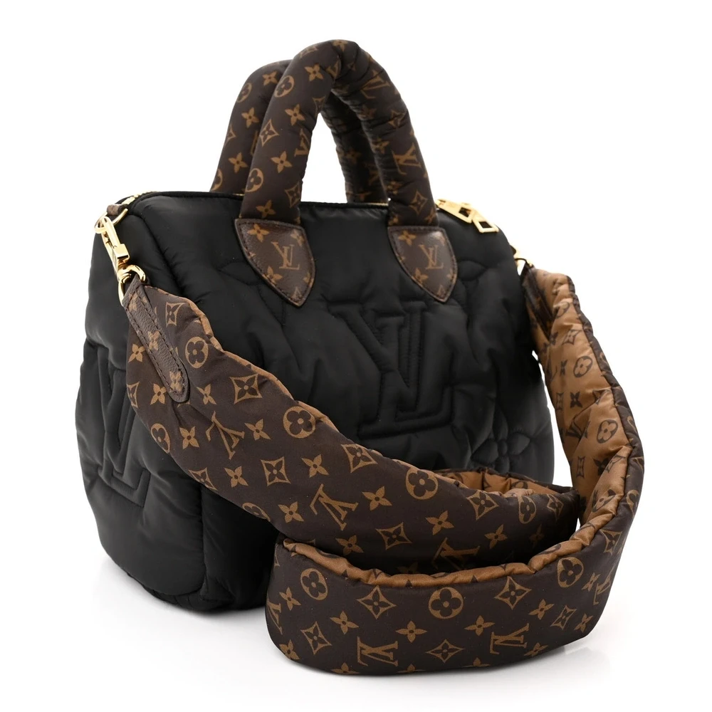 This Louis Vuitton Mini Pillow Speedy Bandoulière 25 Black Econyl & Monogram Canvas Gold Hardware is an eco-friendly twist on the classic Speedy bag. The Econyl fabric, made from recycled materials, adds sustainability to the iconic Monogram canvas. The gold hardware enhances the look, while the adjustable strap makes it easy to carry. The compact size is perfect for carrying your daily essentials in style.