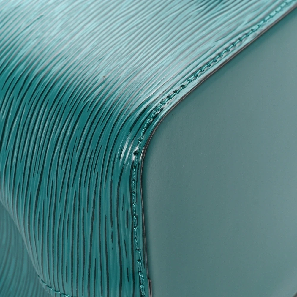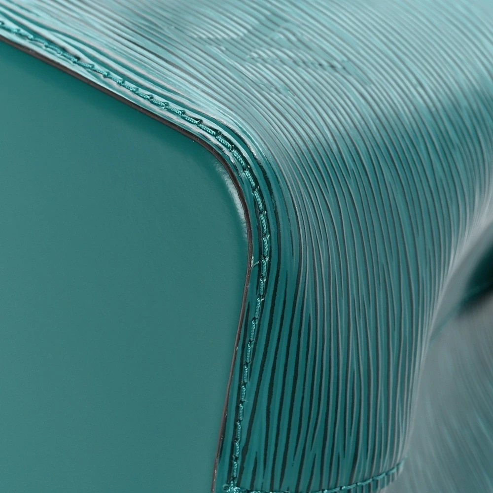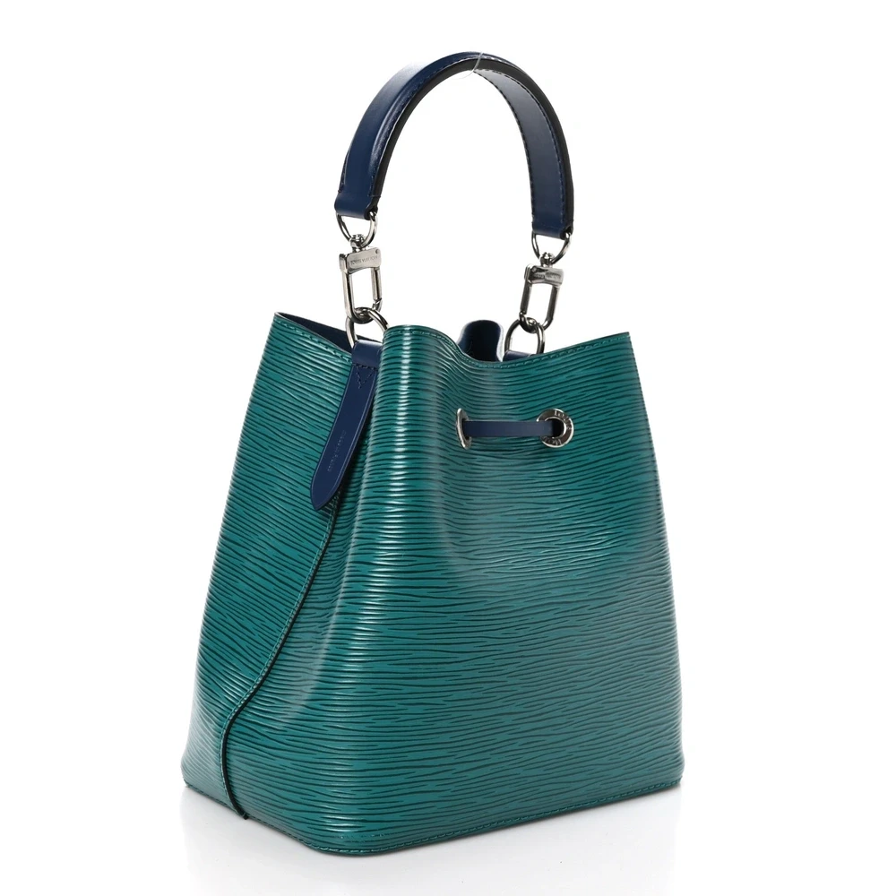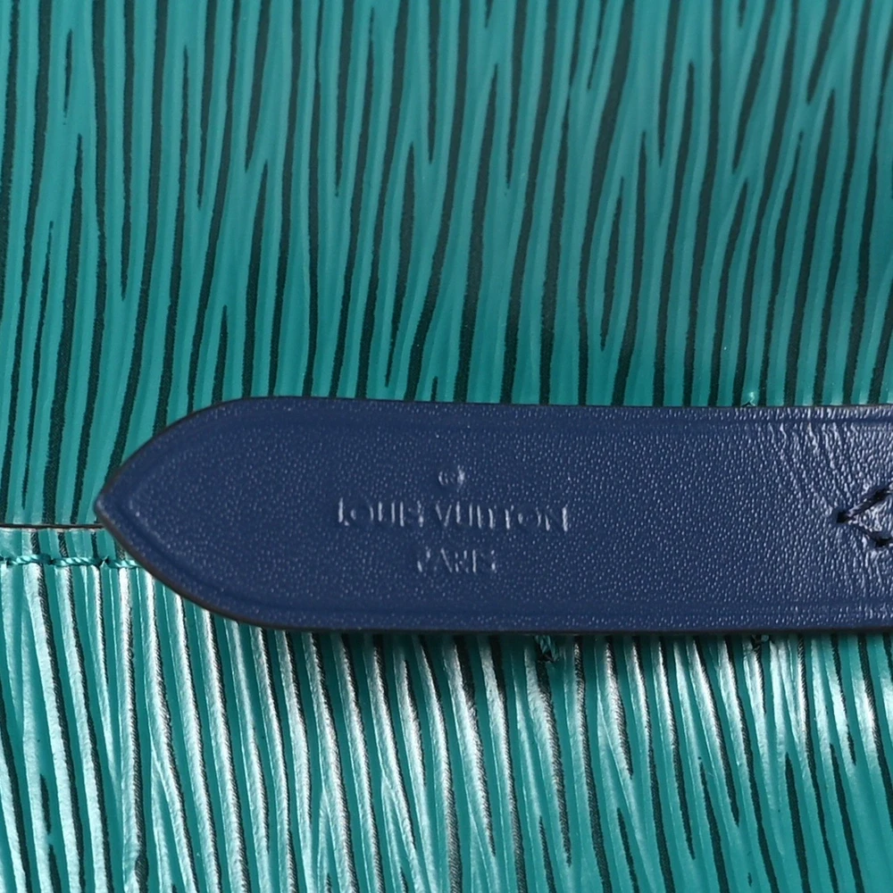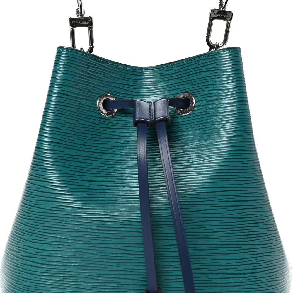 This Louis Vuitton NeoNoe BB Emerald Green / Indigo Epi Leather Silver Hardware is a chic and vibrant bag that adds a pop of color to your wardrobe. The emerald green and indigo Epi leather gives it a rich, textured finish, while the silver hardware enhances its sleek design. The compact size makes it perfect for carrying just the essentials, and the adjustable strap offers comfort and versatility for any outing.