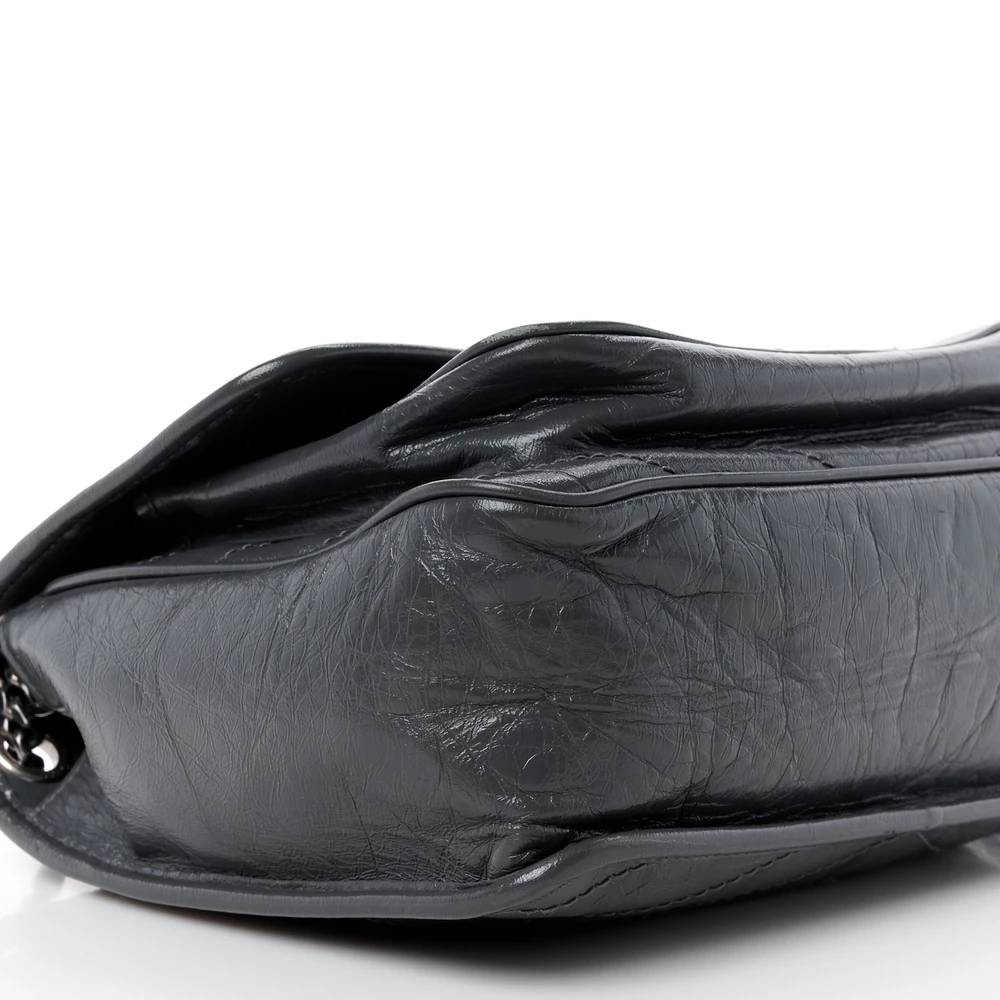 This Medium Niki Chain Satchel in Storm is crafted from Crinkled Monogram Calfskin Matelasse Leather. The sleek design is complemented by silver hardware, offering a sophisticated look. Spacious and versatile, it transitions effortlessly from work to evening events.