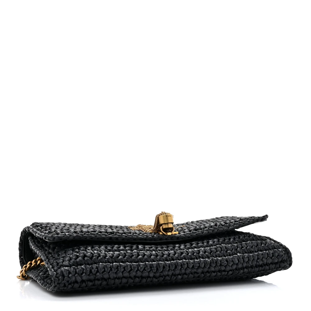 This Medium Kate 99 Tassel Bag in Black showcases Raffia and Monogram detailing with gold hardware. The elegant tassel adds a touch of glamour, while the structured design provides practicality. Its compact interior is perfect for evening essentials, making it a stunning choice for special events. A luxurious piece that captures classic Saint Laurent style.
