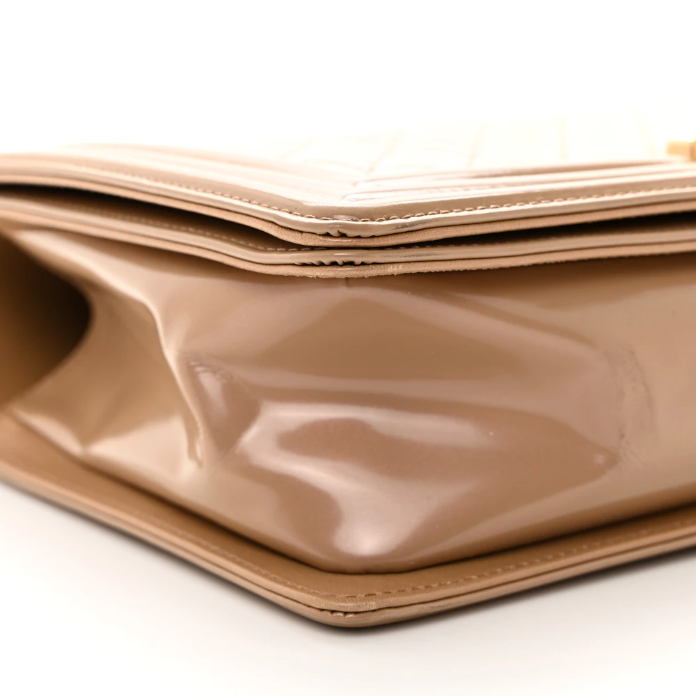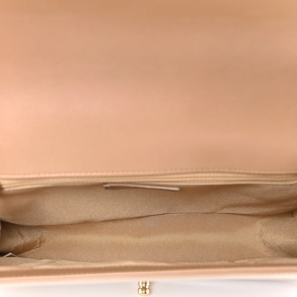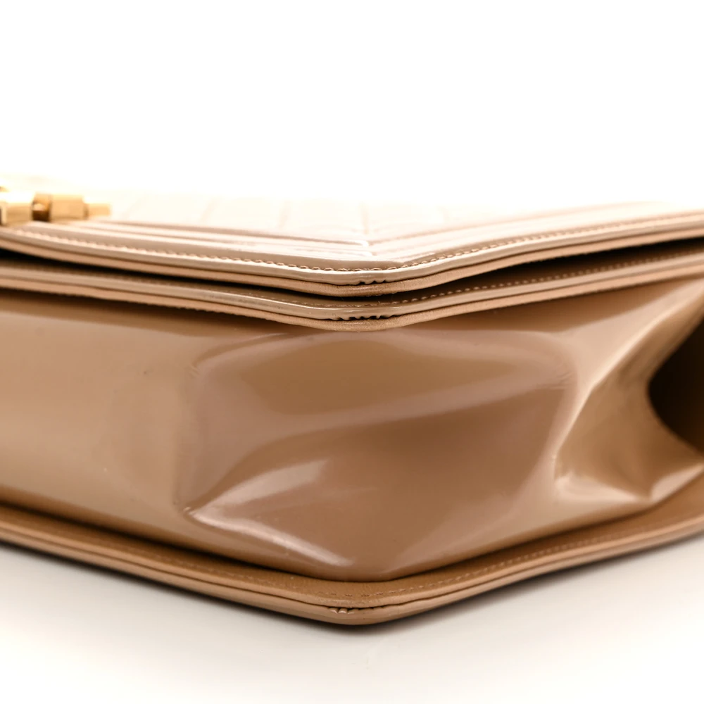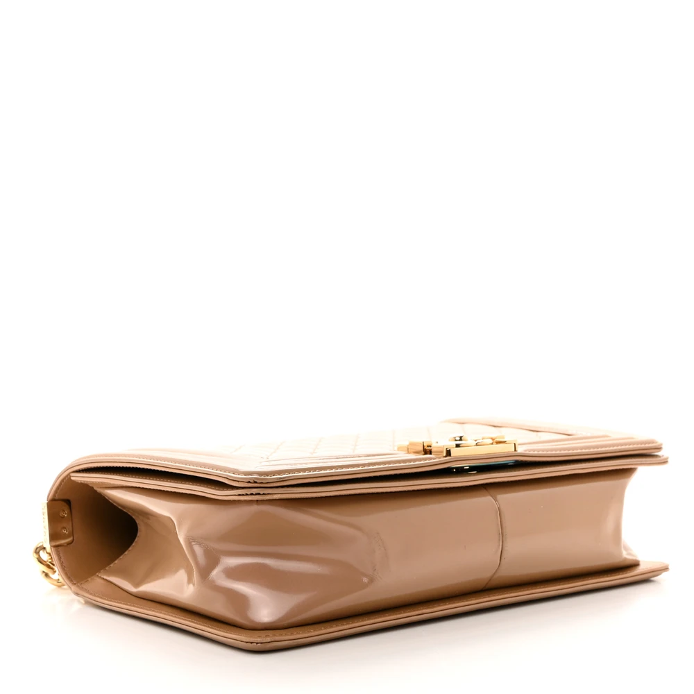 This Chanel Boy Flap New Medium in Dark Beige Quilted Glazed Calfskin Leather with Gold Hardware is a bold and contemporary statement piece. The glazed calfskin leather adds a luxurious sheen, while the quilted design showcases iconic craftsmanship. Gold hardware complements its modern aesthetic, enhancing its versatility. Spacious yet sleek, it’s perfect for carrying essentials with elegance. The signature Boy clasp and chain strap add a touch of edgy sophistication. A must-have for those who love timeless style with a twist.