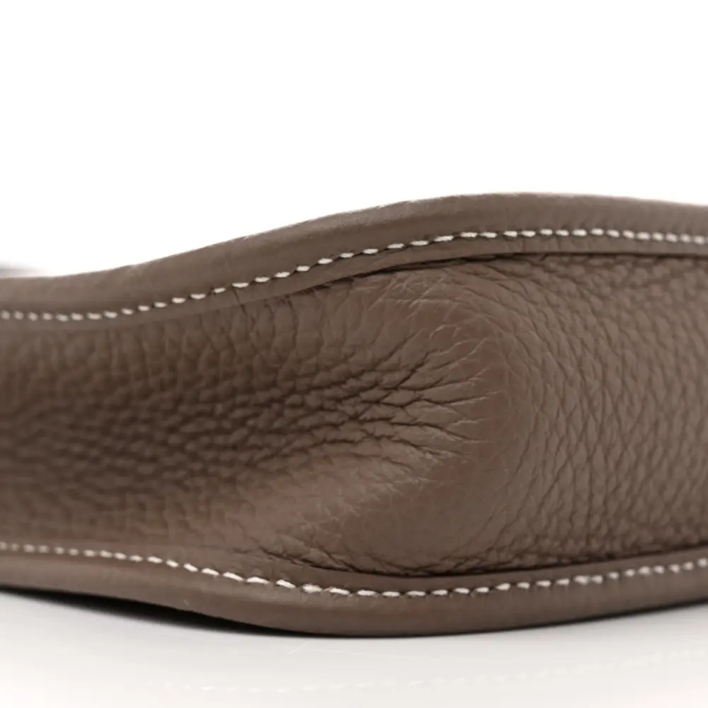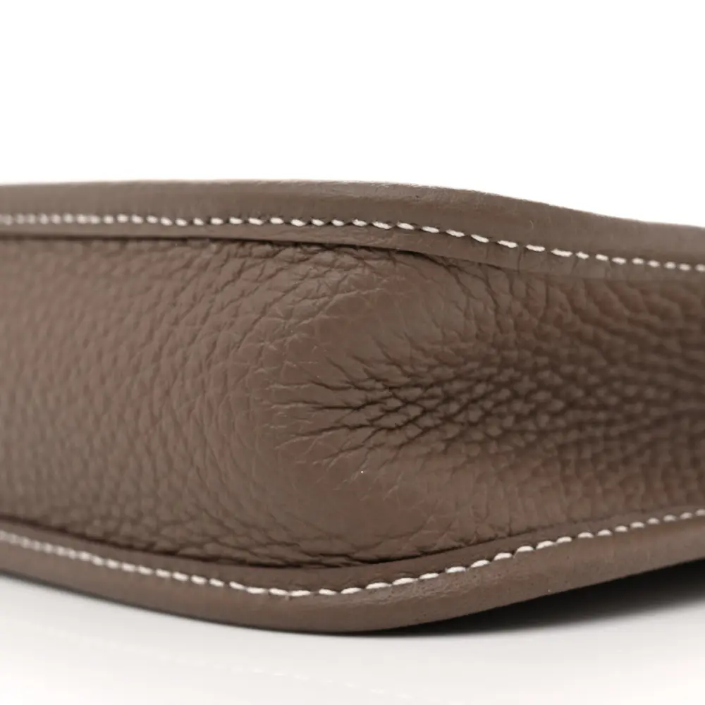 This Hermès Amazone Evelyne TPM in Étain / Bleu Indigo Taurillon Clemence Leather is a chic, compact crossbody. The dual-tone design is paired with silver hardware for a modern aesthetic. Its adjustable strap provides versatility and comfort for on-the-go use. Crafted with Taurillon Clemence leather, it combines durability and style. Perfect for carrying your daily essentials in style. A charming piece for any casual ensemble.