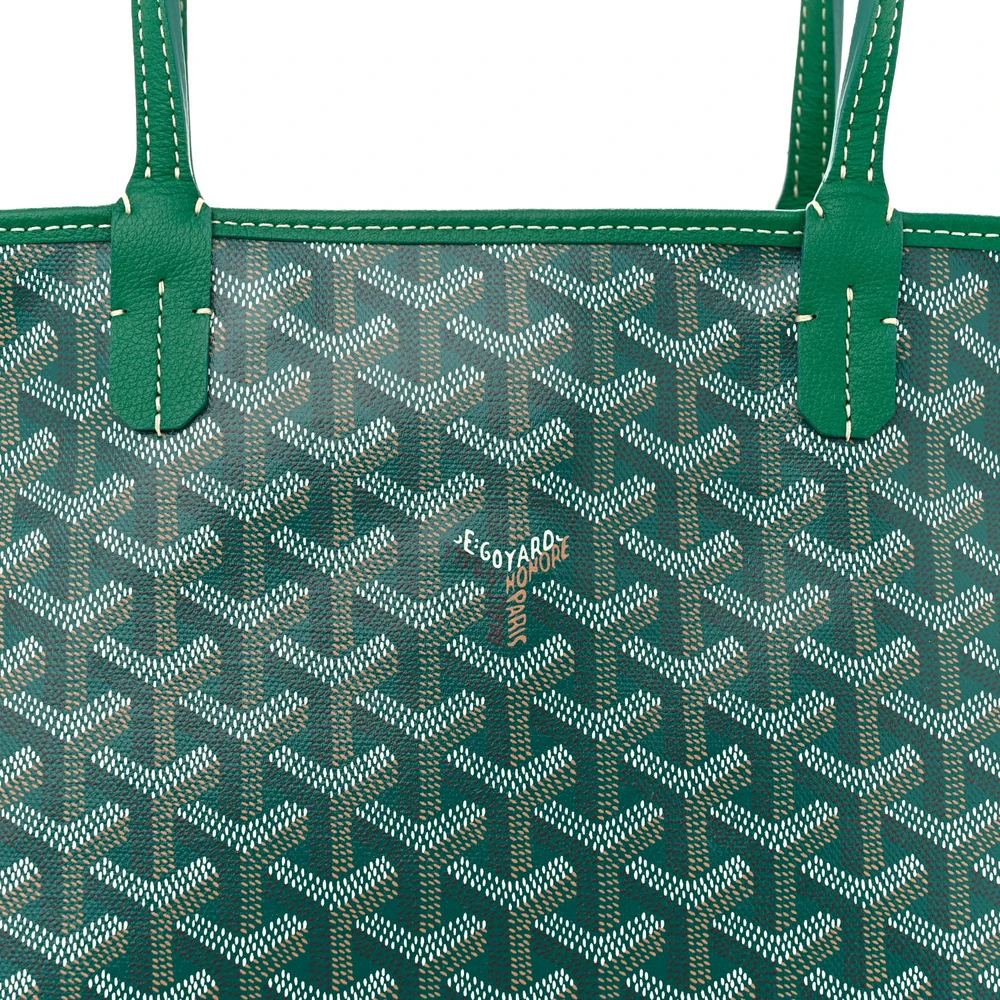 This Goyard Artois Tote PM in Green is crafted in durable Goyardine canvas with reinforced leather corners. Its lightweight and structured design offers practicality with an elegant touch. The green hue adds a vibrant pop to its versatile functionality. Ideal for daily errands or as a stylish travel companion.