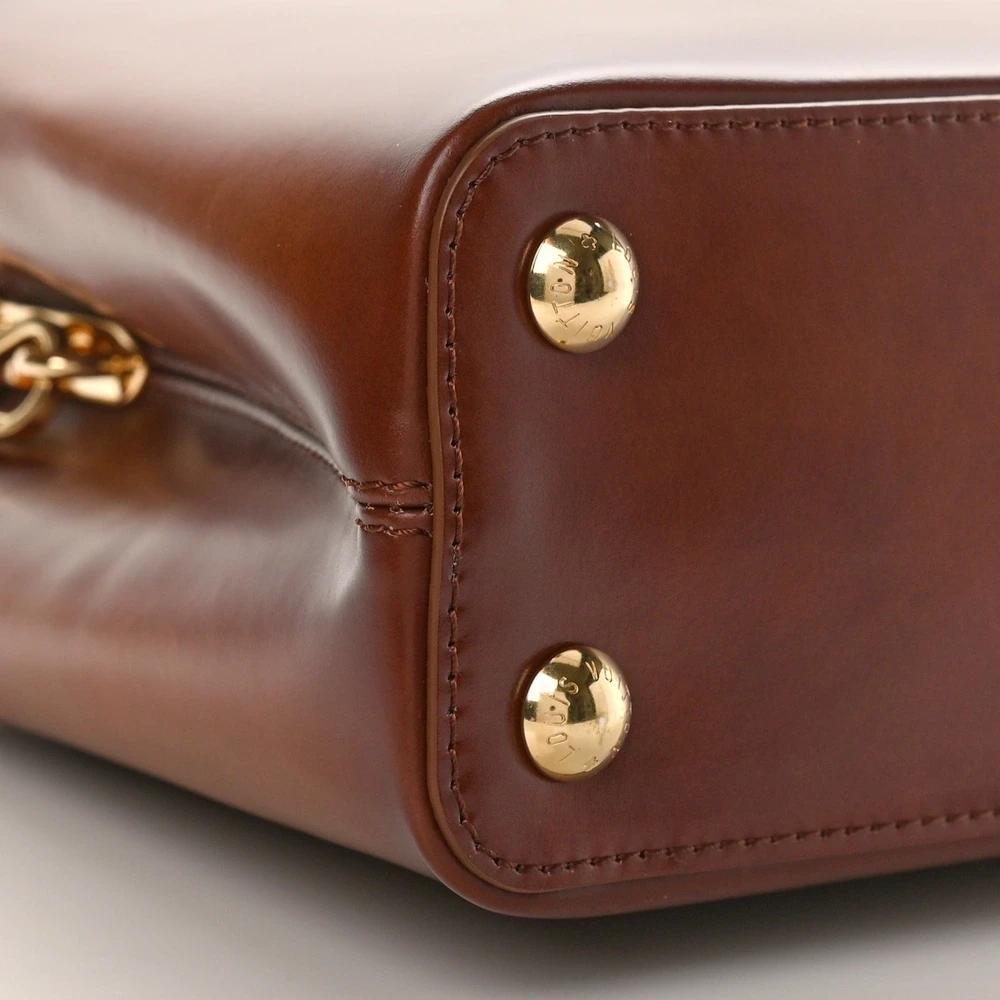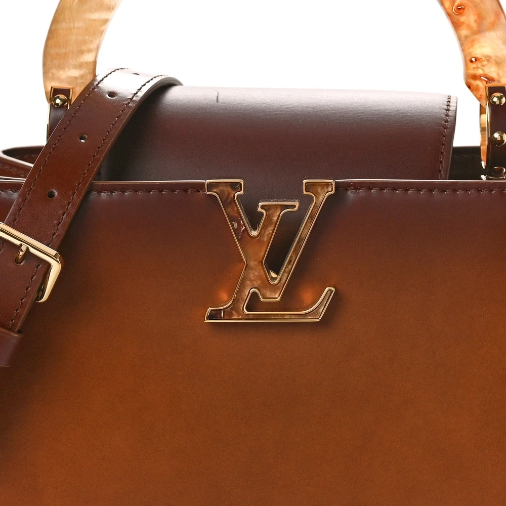 This Louis Vuitton Smoked Tan Calfskin Leather & Resin Capucines BB is a refined, ultra-luxurious bag that exudes elegance. Crafted from premium smoked tan calfskin leather, it’s complemented by sleek resin details for a unique touch. Gold hardware enhances its sophisticated charm, making it an ideal choice for any occasion. The structured design is both practical and chic, with a spacious interior for your essentials. This Capucines BB effortlessly transitions from day to night. A must-have for any fashion-forward individual who appreciates high-quality craftsmanship.