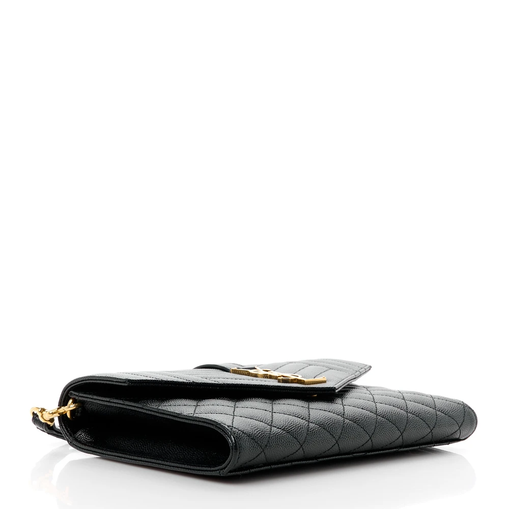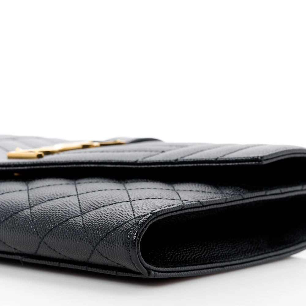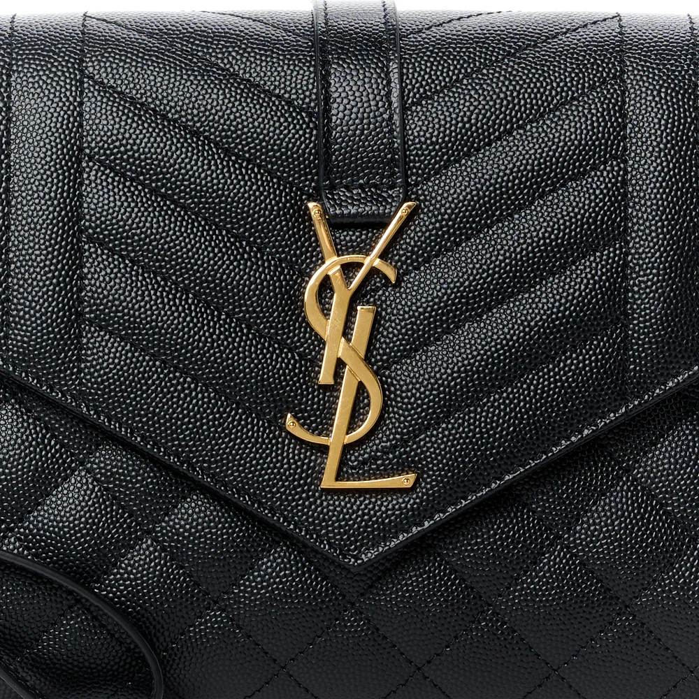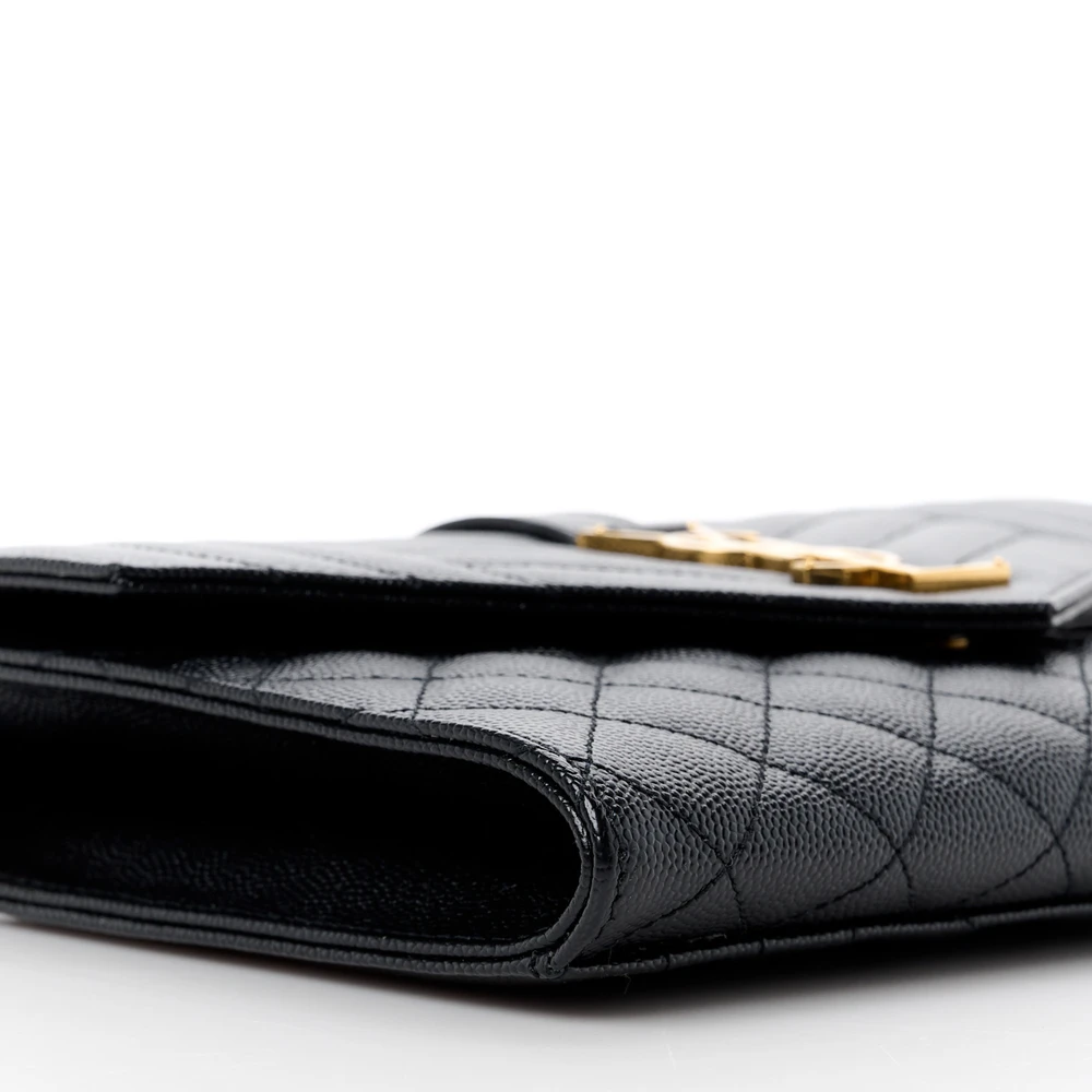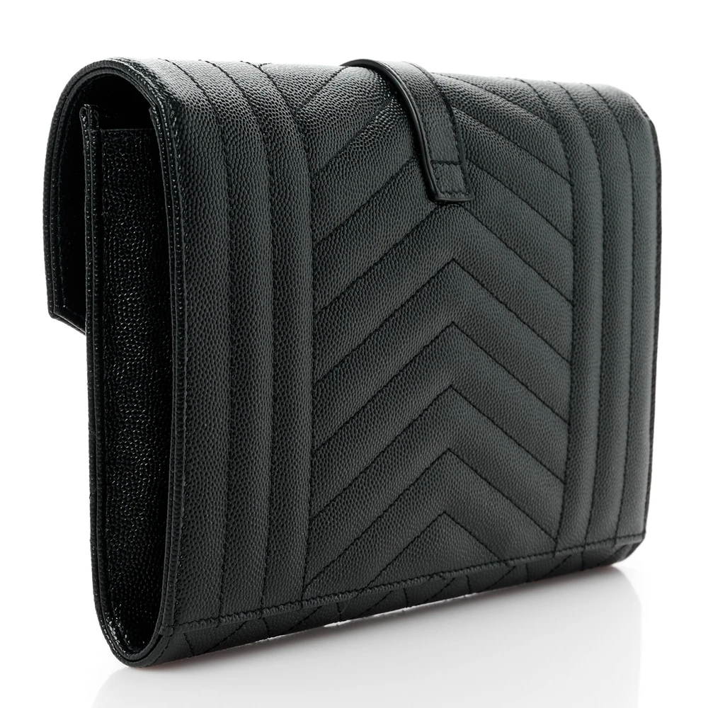 This Medium Clutch in Black showcases Triquilt Monogram Grain De Poudre Textured Mixed Matelasse Leather with gold hardware. Its sleek design is perfect for formal occasions or evening outings. The spacious interior accommodates essentials without compromising on style. A statement piece that elevates any ensemble effortlessly.