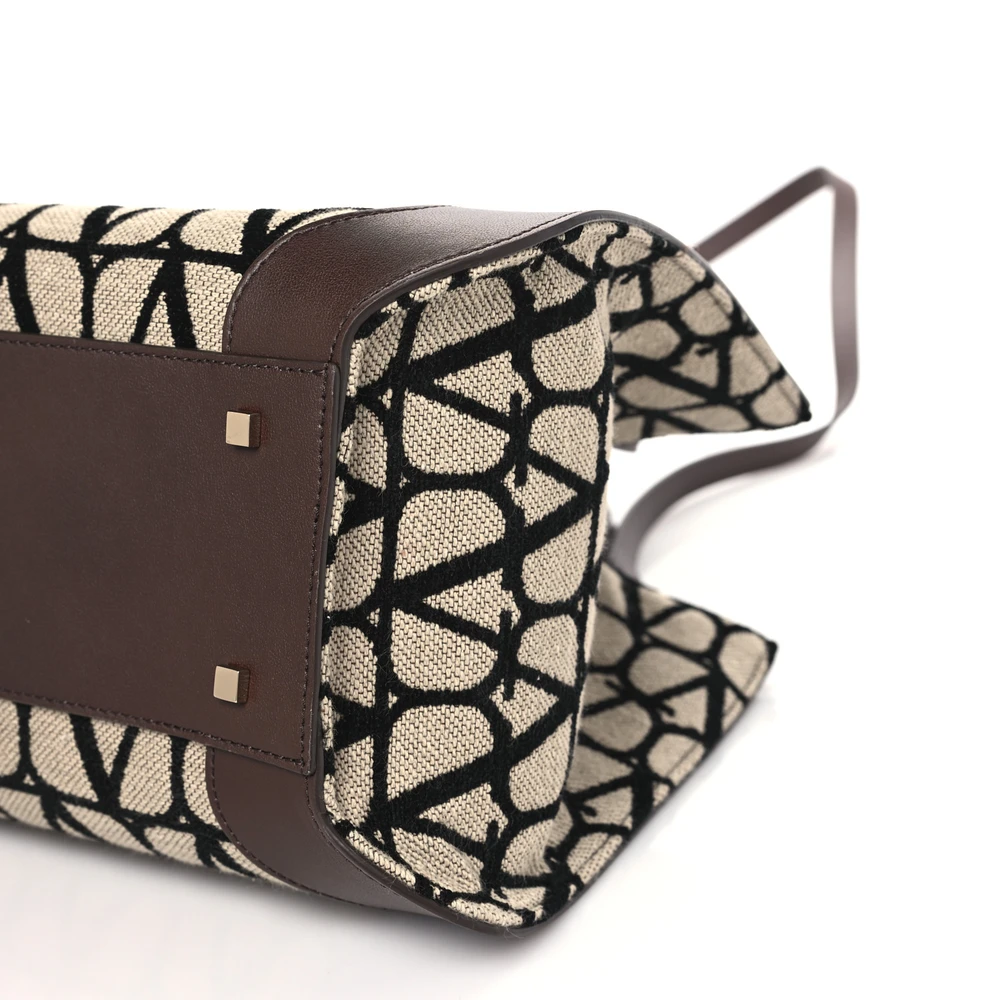 This Valentino Garavani Medium VLogo Tote in Naturale/Black/Fondant is bold and modern. Crafted from Toile Iconographe calfskin leather with gold hardware. Spacious interior for work or travel. Perfect for elevating casual or formal outfits. Durable and stylish for any occasion. A chic and timeless tote.