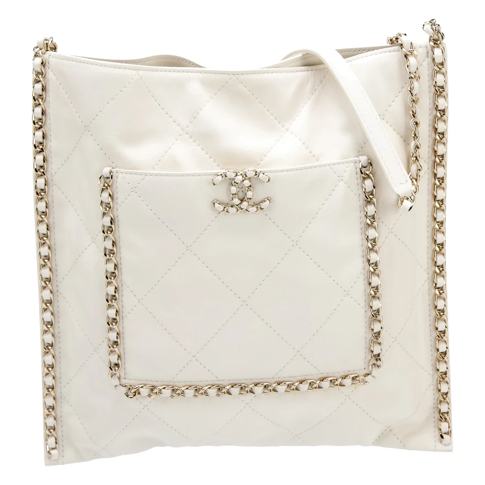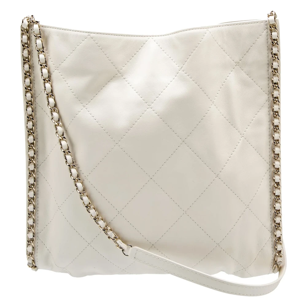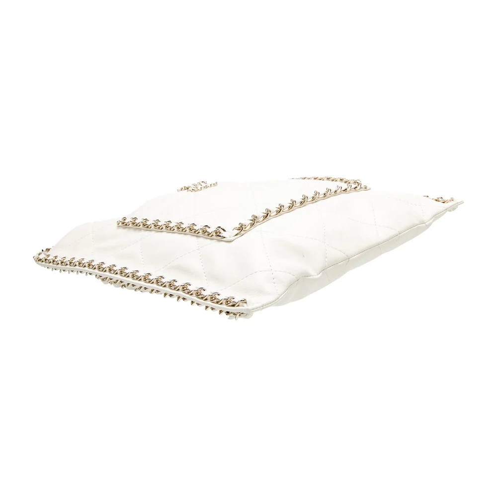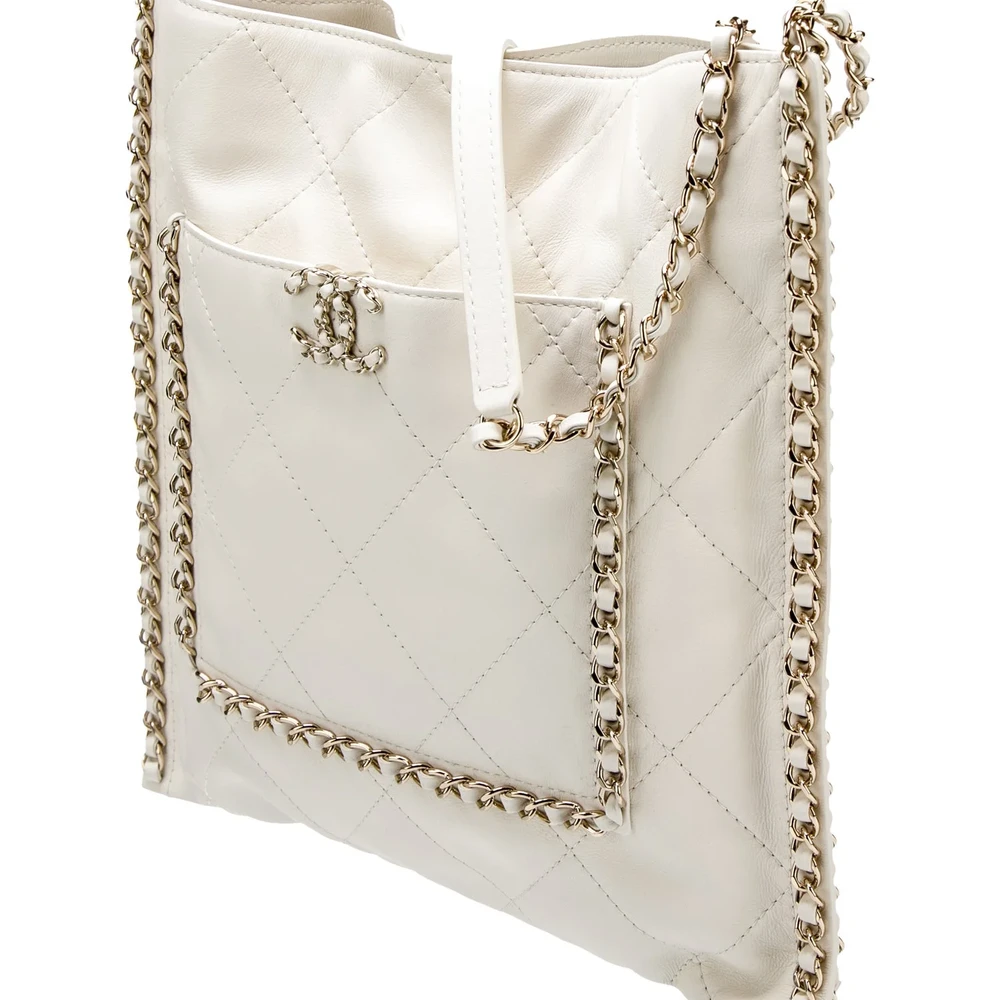 Lushentic Quality Handbags – White Quilted Tote with Gold Chain