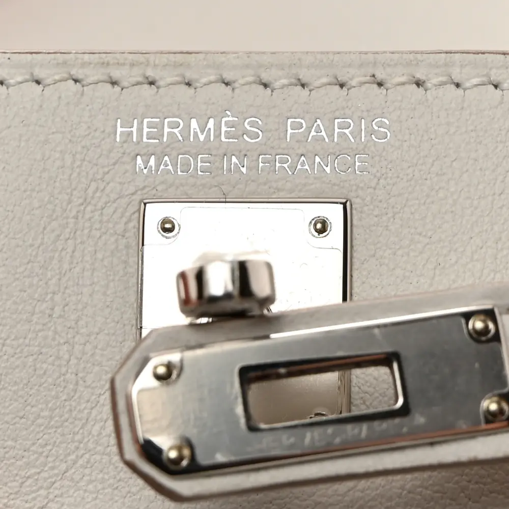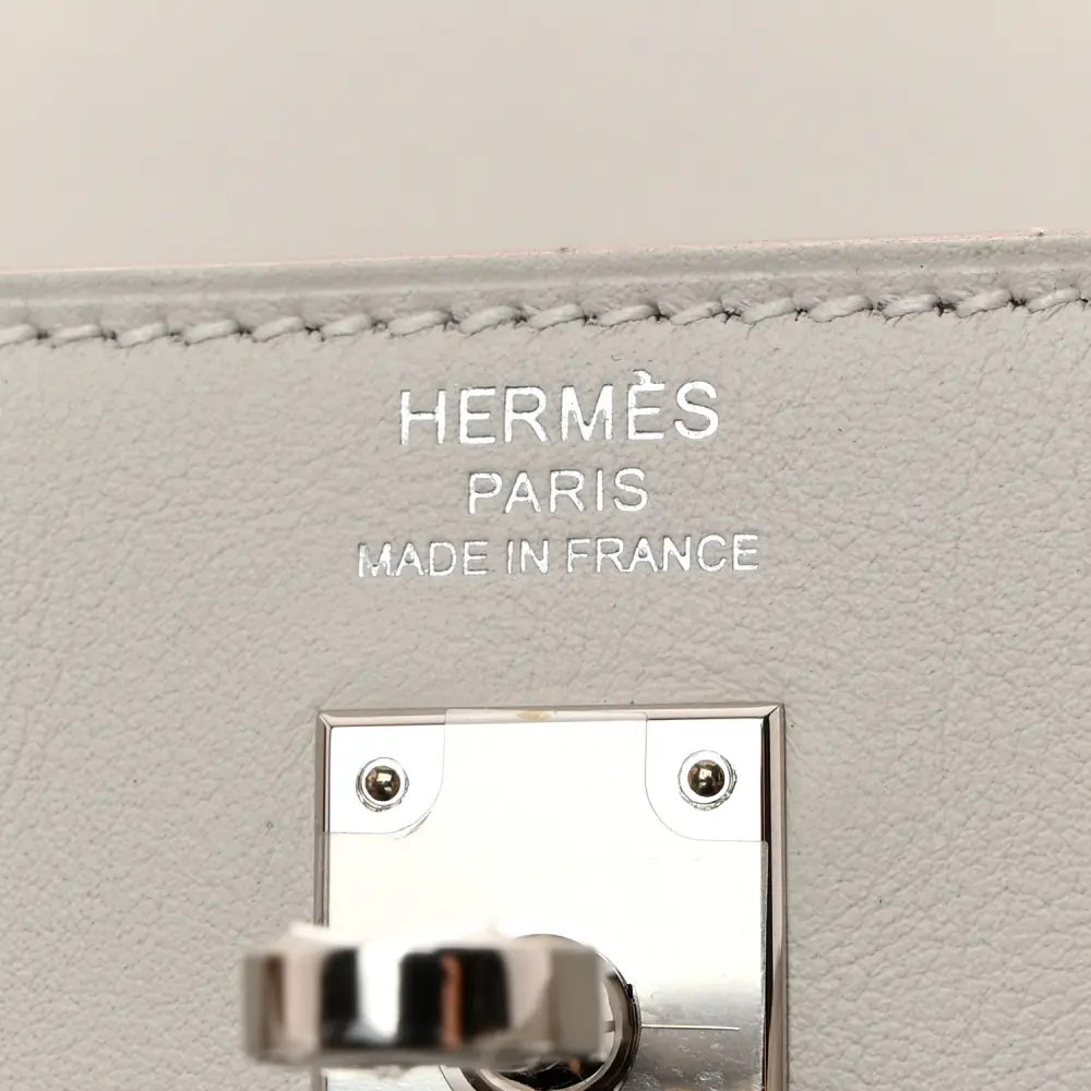 This Hermès Kelly Bag in Gris Pâle Swift Leather is the epitome of classic elegance. The soft gray hue is paired with palladium hardware for a modern touch. Crafted from supple Swift leather, it offers a smooth and luxurious finish. The structured silhouette is perfect for both formal and casual occasions. A detachable strap adds versatility to its design. A timeless investment piece for any collection.
